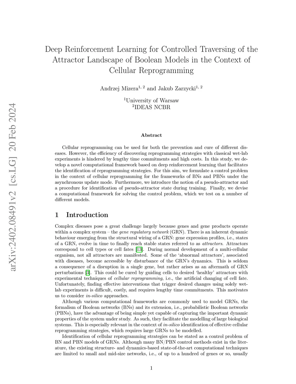 Deep Reinforcement Learning for Controlled Traversing of the Attractor Landscape of Boolean Models in the Context of Cellular Reprogramming