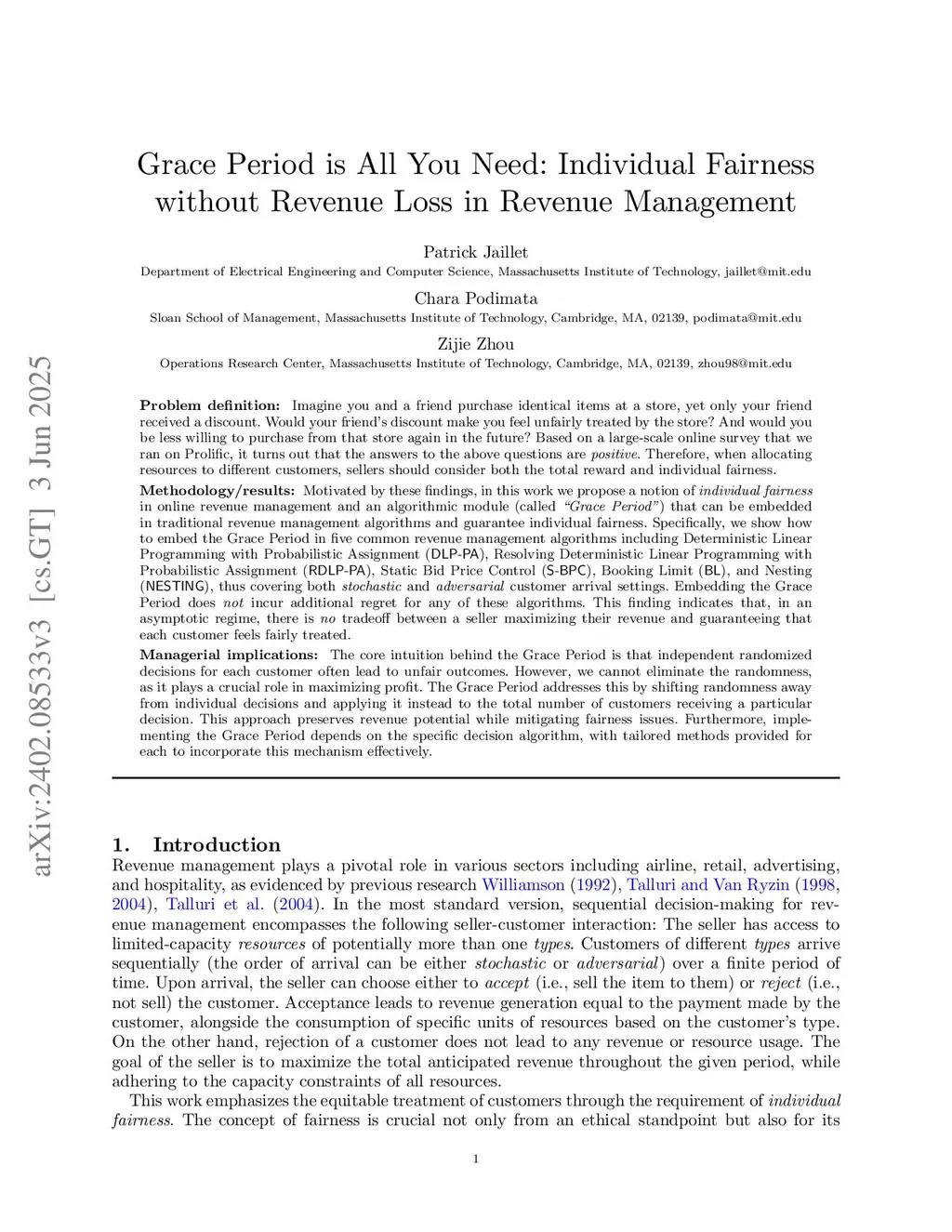 Grace Period is All You Need: Individual Fairness without Revenue Loss in Revenue Management