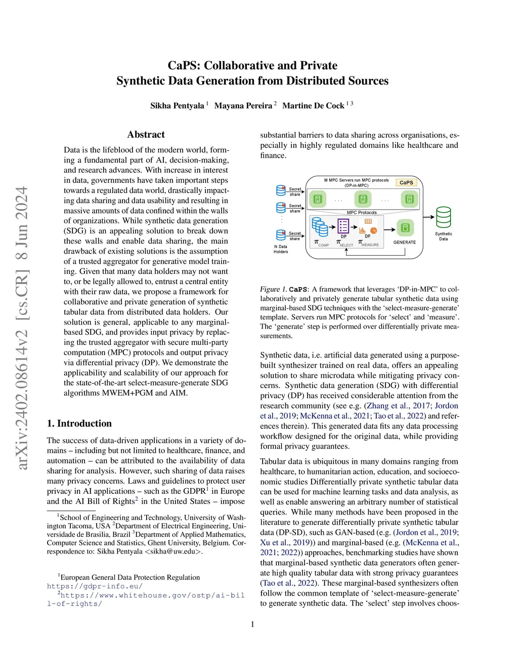 CaPS: Collaborative and Private Synthetic Data Generation from