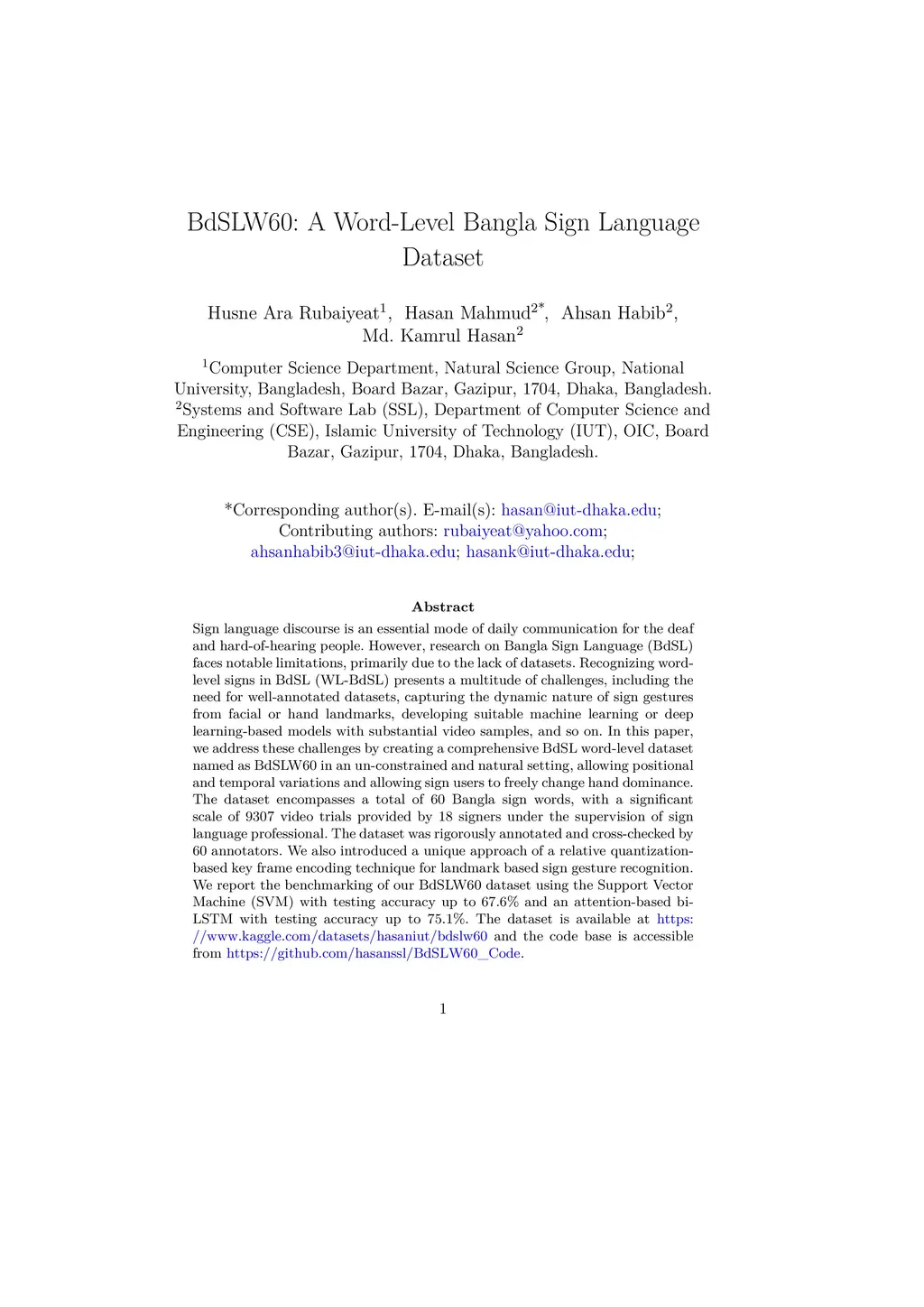 BdSLW60: A Word-Level Bangla Sign Language Dataset