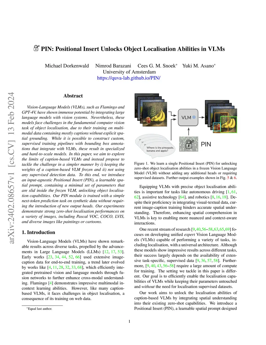 PIN: Positional Insert Unlocks Object Localisation Abilities in VLMs