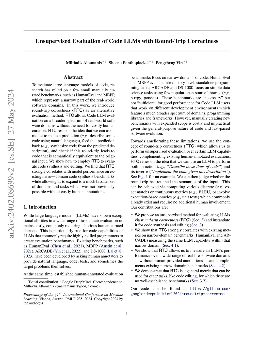 Unsupervised Evaluation of Code LLMs with Round-Trip Correctness