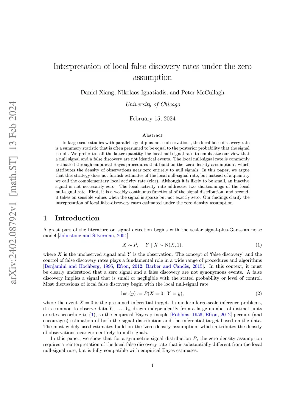 In large-scale studies with parallel signal-plus-noise observations, the local false discovery rate is a summary statistic that is often presumed to be equal to the posterior probability that the signal is null. We prefer to call the latter quantity the local null-signal rate to emphasize our view that a null signal and a false discovery are not identical events. The local null-signal rate is commonly estimated through empirical Bayes procedures that build on the `zero density assumption', which attributes the density of observations near zero entirely to null signals. In this paper, we argue that this strategy does not furnish estimates of the local null-signal rate, but instead of a quantity we call the complementary local activity rate (clar). Although it is likely to be small, an inactive signal is not necessarily zero. The local activity rate addresses two shortcomings of the local null-signal rate. First, it is a weakly continuous functional of the signal distribution, and second, it takes on sensible values when the signal is sparse but not exactly zero. Our findings clarify the interpretation of local false-discovery rates estimated under the zero density assumption.