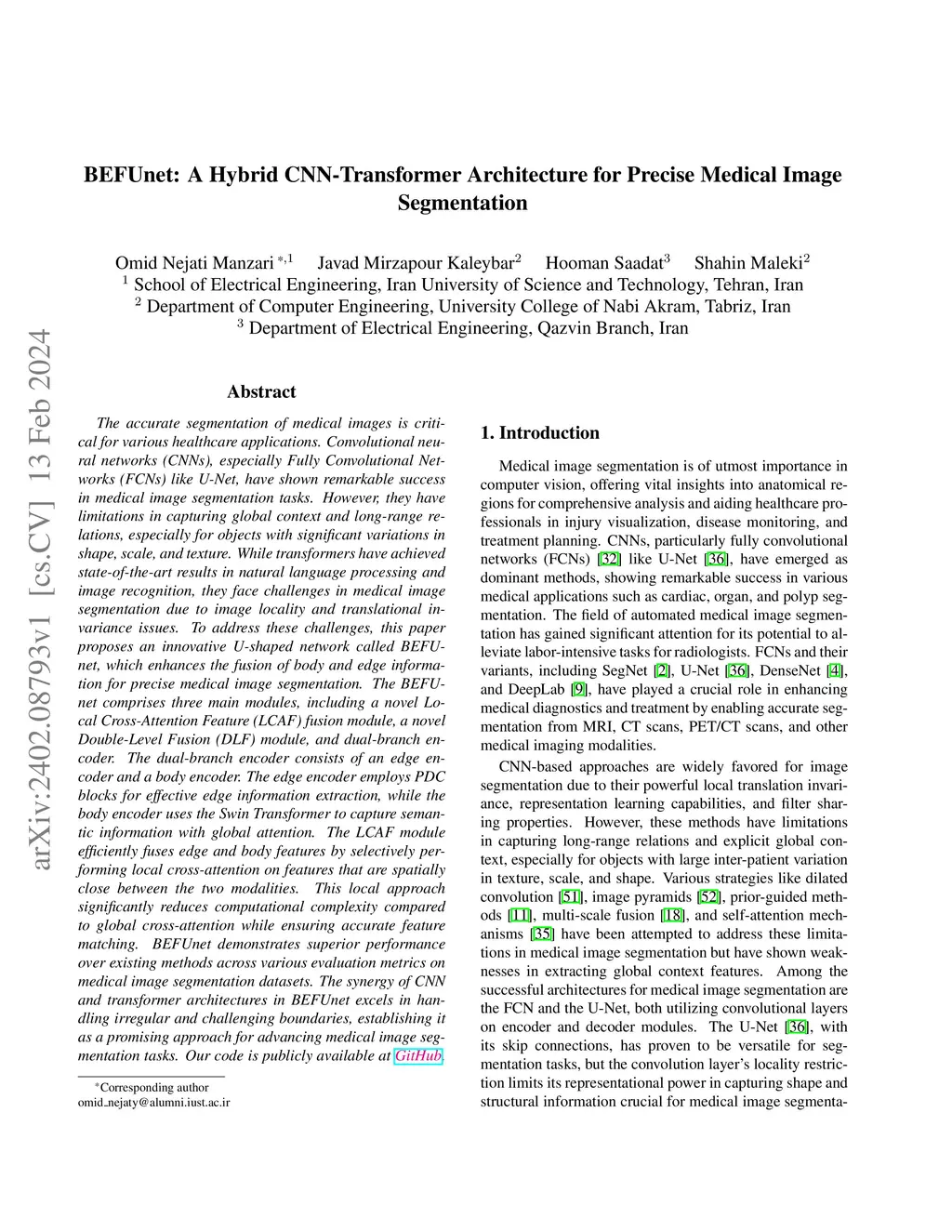 BEFUnet: A Hybrid CNN-Transformer Architecture for Precise Medical Image