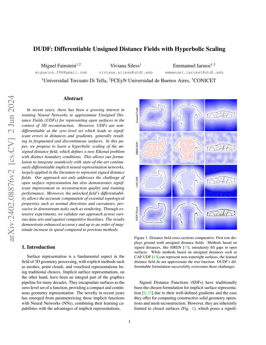 In recent years, there has been a growing interest in training Neural Networks to approximate Unsigned Distance Fields (UDFs) for representing open surfaces in the context of 3D reconstruction. However, UDFs are non-differentiable at the zero level set which leads to significant errors in distances and gradients, generally resulting in fragmented and discontinuous surfaces. In this paper, we propose to learn a hyperbolic scaling of the unsigned distance field, which defines a new Eikonal problem with distinct boundary conditions. This allows our formulation to integrate seamlessly with state-of-the-art continuously differentiable implicit neural representation networks, largely applied in the literature to represent signed distance fields. Our approach not only addresses the challenge of open surface representation but also demonstrates significant improvement in reconstruction quality and training performance. Moreover, the unlocked field's differentiability allows the accurate computation of essential topological properties such as normal directions and curvatures, pervasive in downstream tasks such as rendering. Through extensive experiments, we validate our approach across various data sets and against competitive baselines. The results demonstrate enhanced accuracy and up to an order of magnitude increase in speed compared to previous methods.