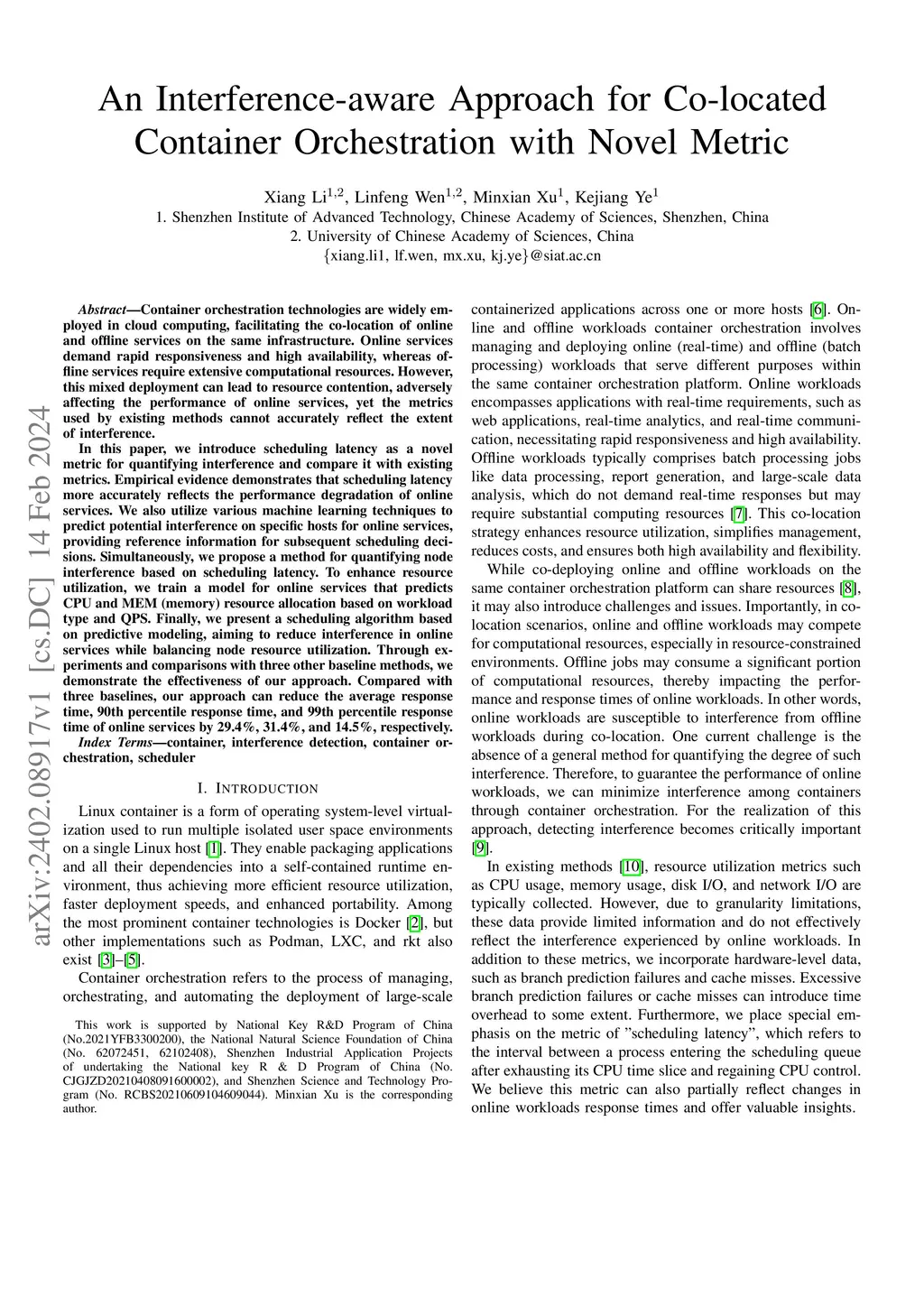 Container orchestration technologies are widely employed in cloud computing, facilitating the co-location of online and offline services on the same infrastructure. Online services demand rapid responsiveness and high availability, whereas offline services require extensive computational resources. However, this mixed deployment can lead to resource contention, adversely affecting the performance of online services, yet the metrics used by existing methods cannot accurately reflect the extent of interference. In this paper, we introduce scheduling latency as a novel metric for quantifying interference and compare it with existing metrics. Empirical evidence demonstrates that scheduling latency more accurately reflects the performance degradation of online services. We also utilize various machine learning techniques to predict potential interference on specific hosts for online services, providing reference information for subsequent scheduling decisions. Simultaneously, we propose a method for quantifying node interference based on scheduling latency. To enhance resource utilization, we train a model for online services that predicts CPU and MEM (memory) resource allocation based on workload type and QPS. Finally, we present a scheduling algorithm based on predictive modeling, aiming to reduce interference in online services while balancing node resource utilization. Through experiments and comparisons with three other baseline methods, we demonstrate the effectiveness of our approach. Compared with three baselines, our approach can reduce the average response time, 90th percentile response time, and 99th percentile response time of online services by 29.4%, 31.4%, and 14.5%, respectively.