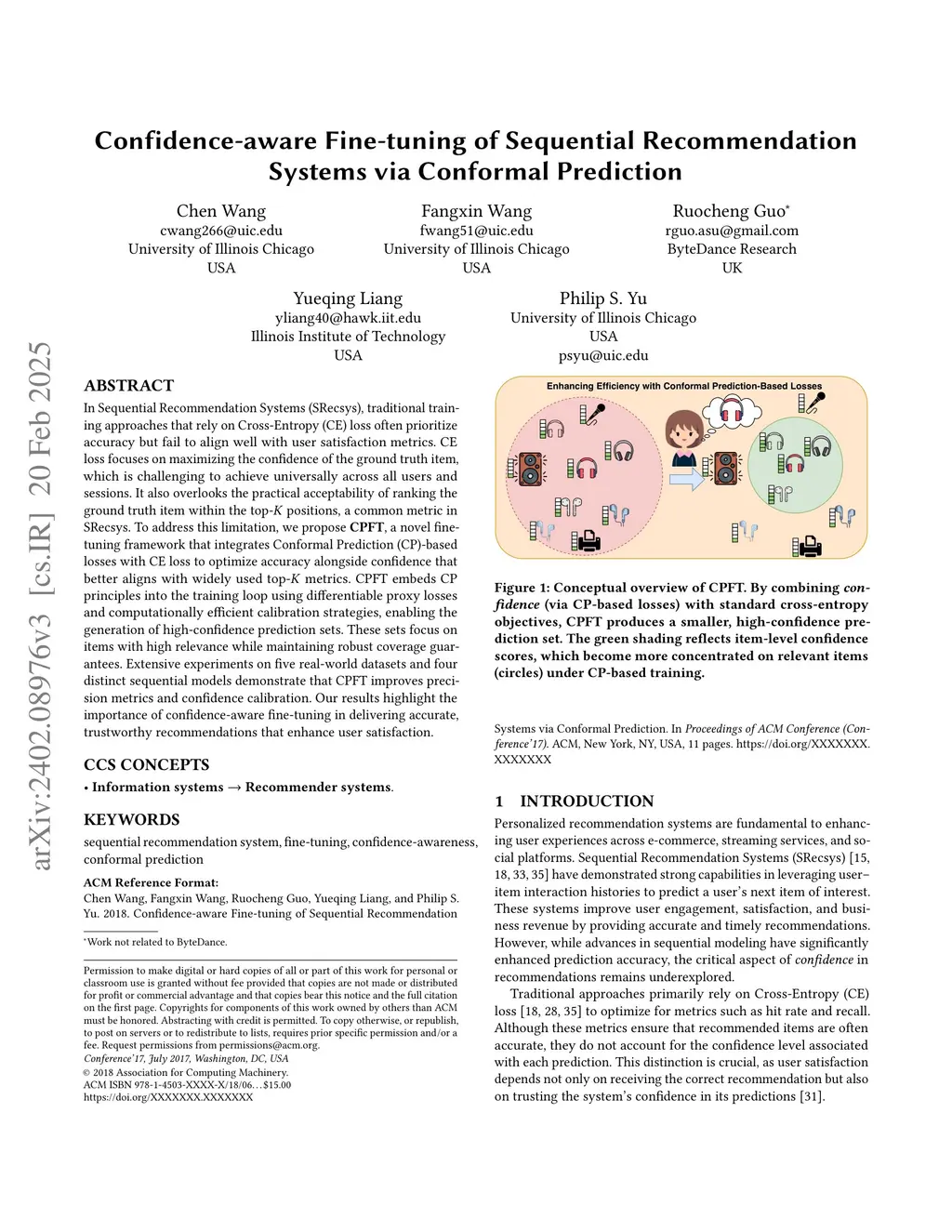 In Sequential Recommendation Systems (SRecsys), traditional training approaches that rely on Cross-Entropy (CE) loss often prioritize accuracy but fail to align well with user satisfaction metrics. CE loss focuses on maximizing the confidence of the ground truth item, which is challenging to achieve universally across all users and sessions. It also overlooks the practical acceptability of ranking the ground truth item within the top- positions, a common metric in SRecsys. To address this limitation, we propose \textbf{CPFT}, a novel fine-tuning framework that integrates Conformal Prediction (CP)-based losses with CE loss to optimize accuracy alongside confidence that better aligns with widely used top- metrics. CPFT embeds CP principles into the training loop using differentiable proxy losses and computationally efficient calibration strategies, enabling the generation of high-confidence prediction sets. These sets focus on items with high relevance while maintaining robust coverage guarantees. Extensive experiments on five real-world datasets and four distinct sequential models demonstrate that CPFT improves precision metrics and confidence calibration. Our results highlight the importance of confidence-aware fine-tuning in delivering accurate, trustworthy recommendations that enhance user satisfaction.