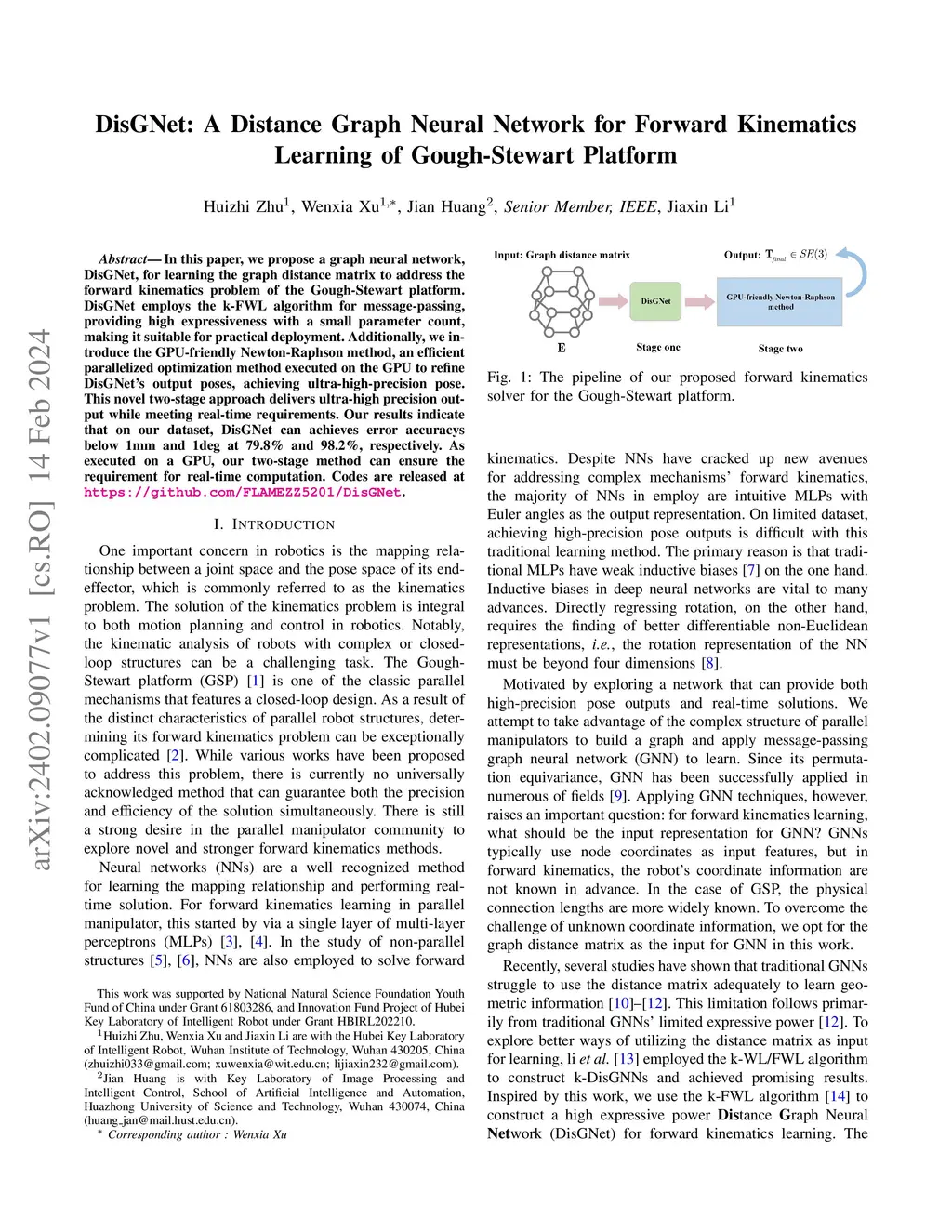 DisGNet: A Distance Graph Neural Network for Forward Kinematics Learning