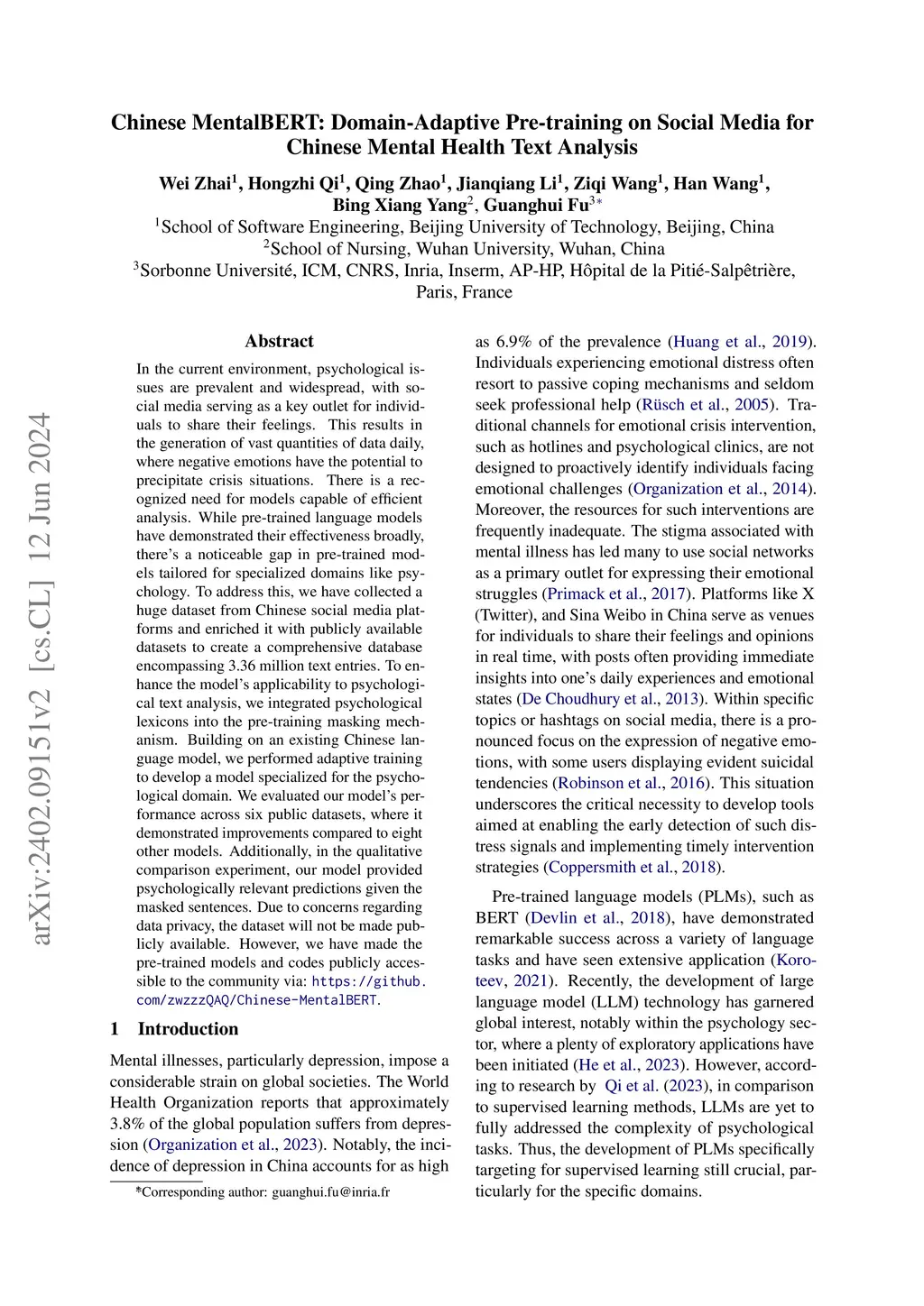 Chinese MentalBERT: Domain-Adaptive Pre-training on Social Media for