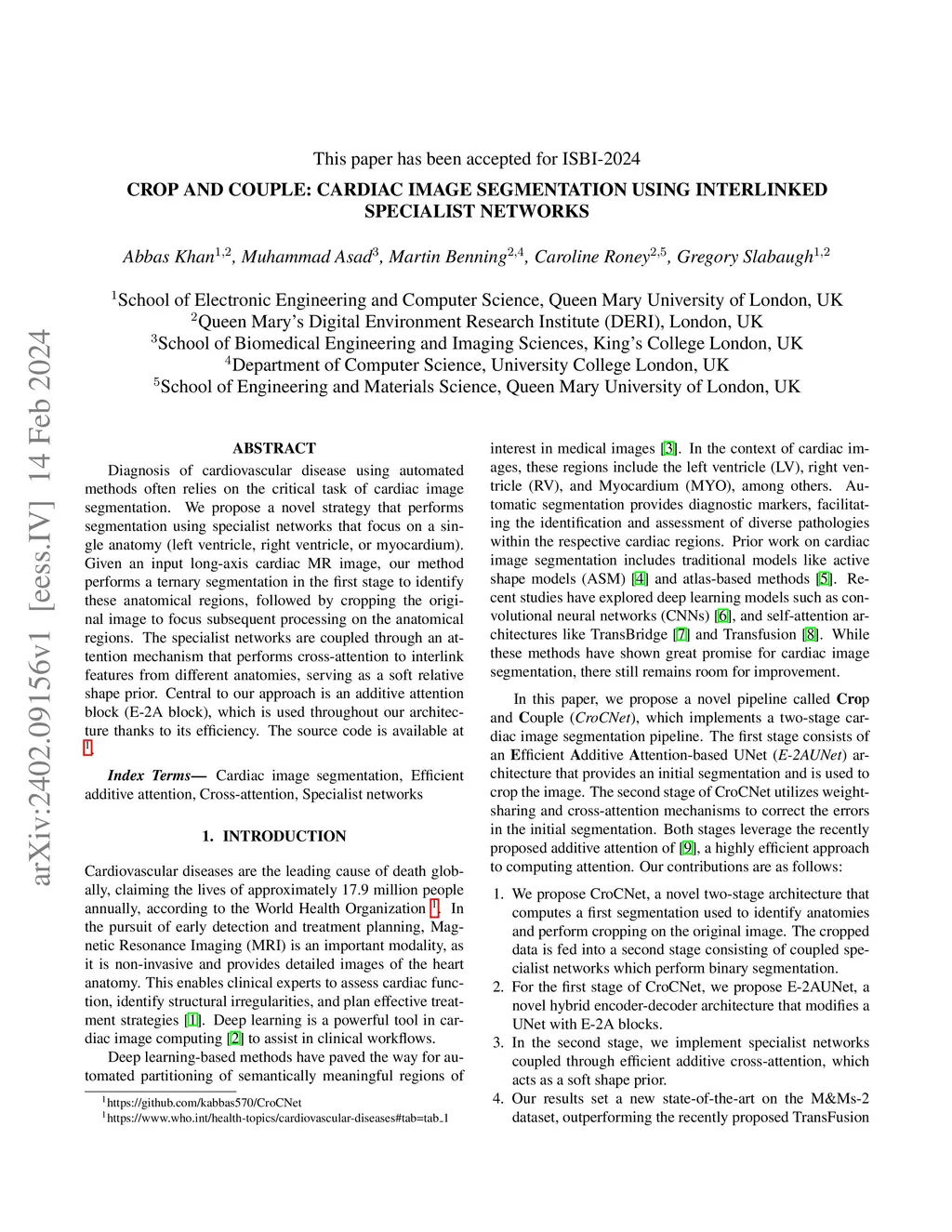 Crop and Couple: cardiac image segmentation using interlinked specialist