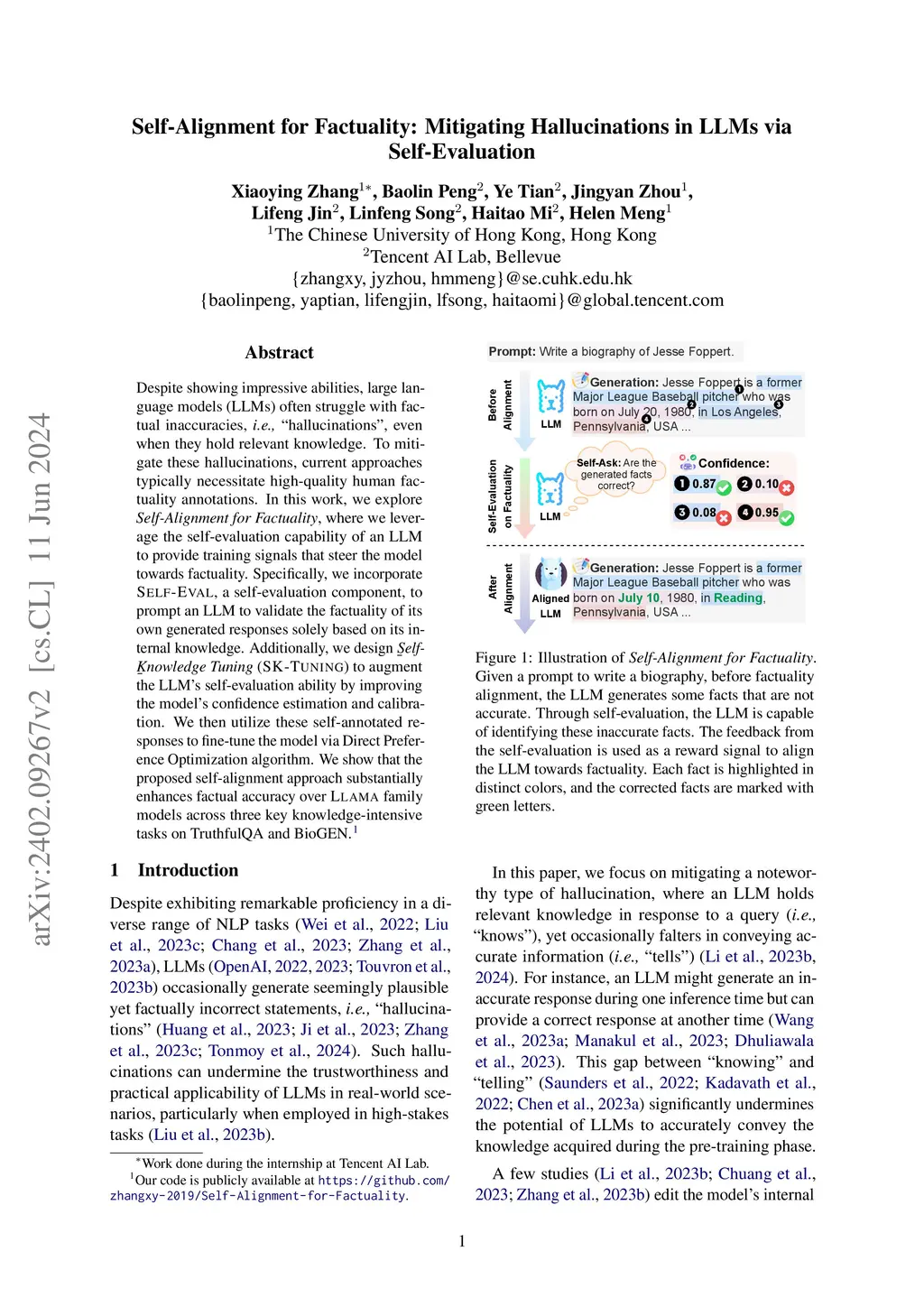 Self-Alignment for Factuality: Mitigating Hallucinations in LLMs via