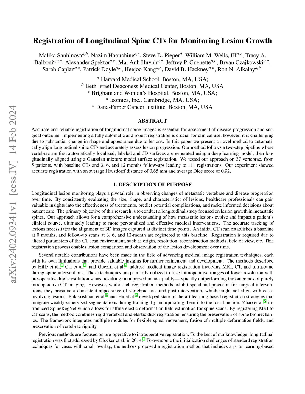 Registration of Longitudinal Spine CTs for Monitoring Lesion Growth