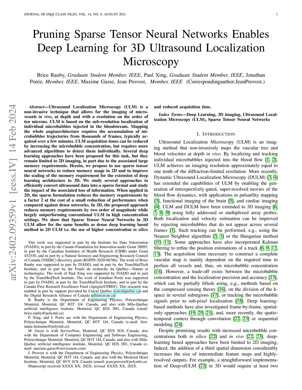 Pruning Sparse Tensor Neural Networks Enables Deep Learning for 3D Ultrasound Localization Microscopy