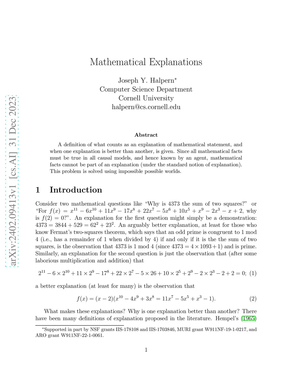 A definition of what counts as an explanation of mathematical statement, and when one explanation is better than another, is given. Since all mathematical facts must be true in all causal models, and hence known by an agent, mathematical facts cannot be part of an explanation (under the standard notion of explanation). This problem is solved using impossible possible worlds.
