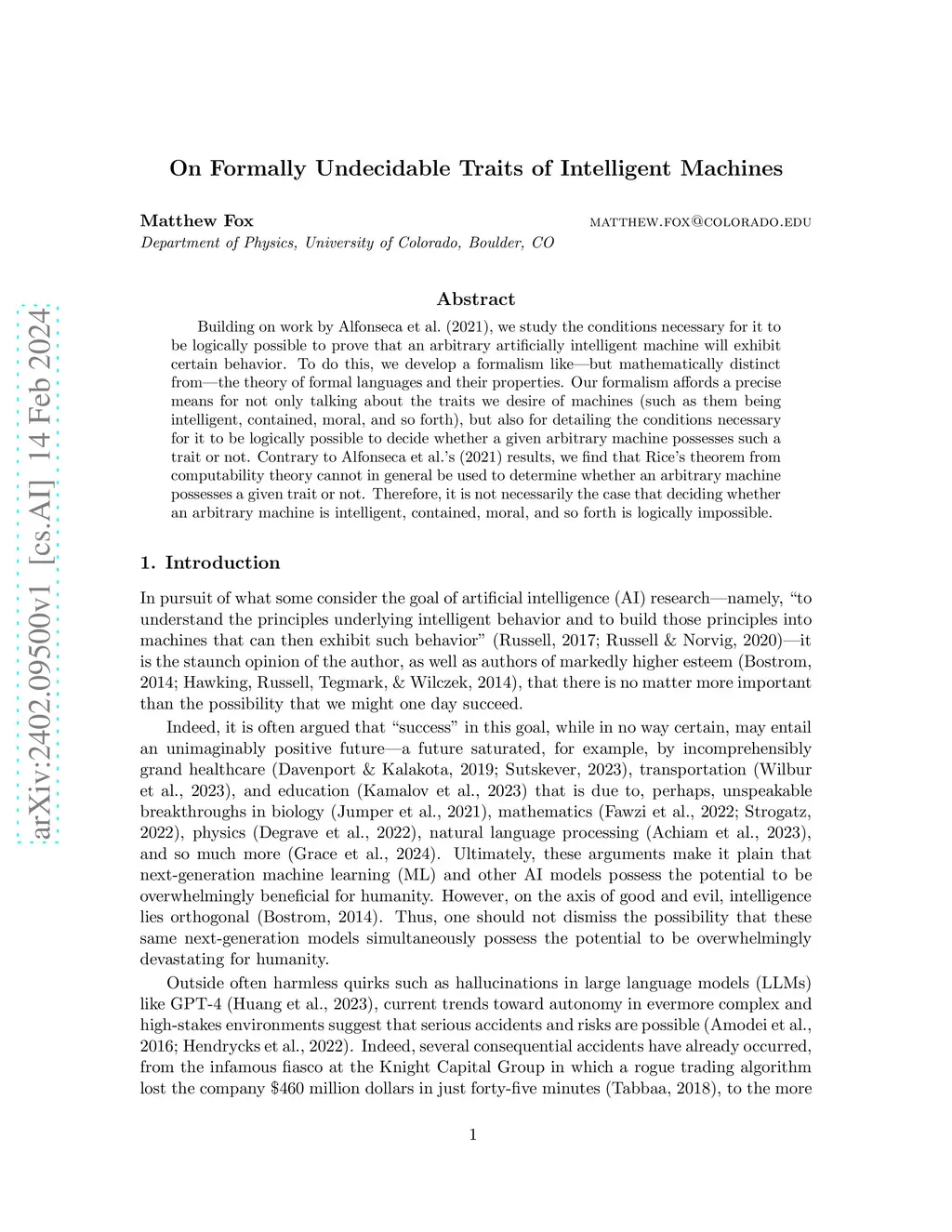 Building on work by Alfonseca et al. (2021), we study the conditions necessary for it to be logically possible to prove that an arbitrary artificially intelligent machine will exhibit certain behavior. To do this, we develop a formalism like -- but mathematically distinct from -- the theory of formal languages and their properties. Our formalism affords a precise means for not only talking about the traits we desire of machines (such as them being intelligent, contained, moral, and so forth), but also for detailing the conditions necessary for it to be logically possible to decide whether a given arbitrary machine possesses such a trait or not. Contrary to Alfonseca et al.'s (2021) results, we find that Rice's theorem from computability theory cannot in general be used to determine whether an arbitrary machine possesses a given trait or not. Therefore, it is not necessarily the case that deciding whether an arbitrary machine is intelligent, contained, moral, and so forth is logically impossible.