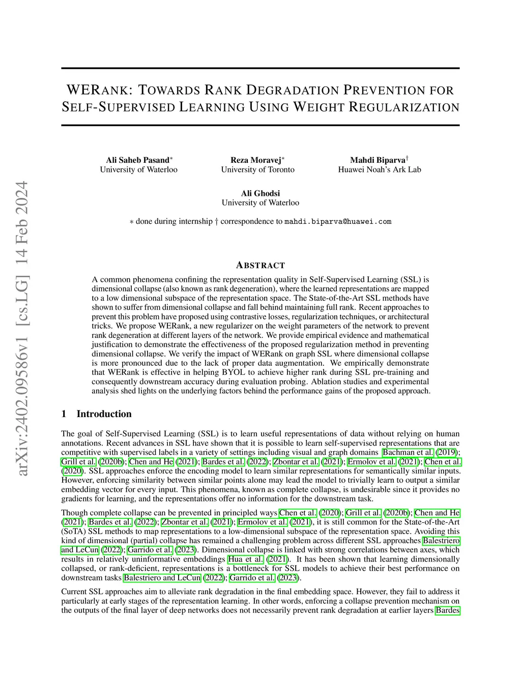 WERank: Towards Rank Degradation Prevention for Self-Supervised Learning