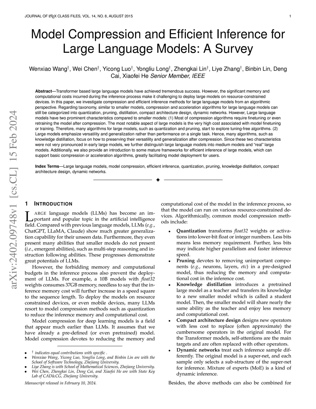 Model Compression and Efficient Inference for Large Language Models: A