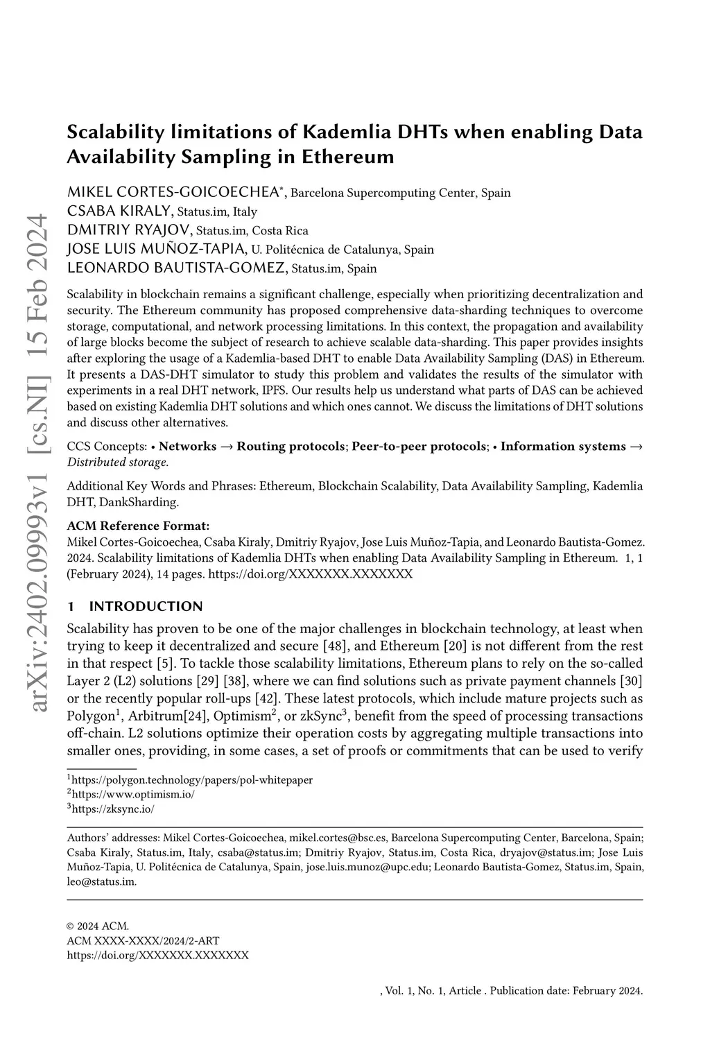 Sampling in Ethereum