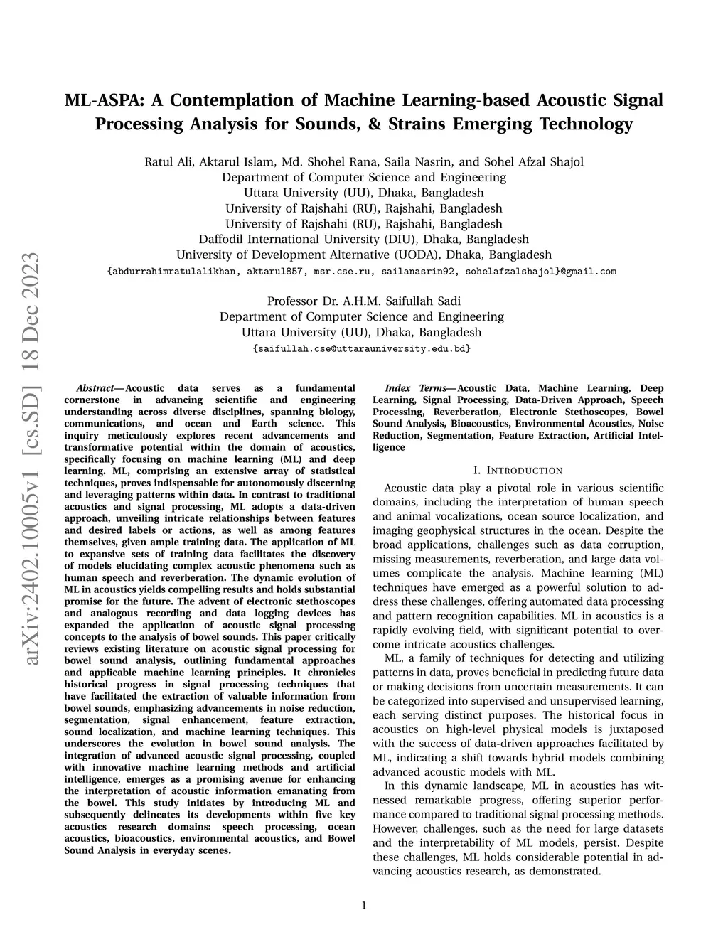 ML-ASPA: A Contemplation of Machine Learning-based Acoustic Signal