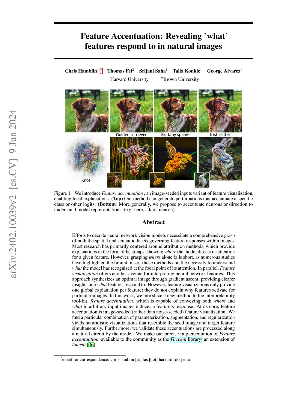 Efforts to decode neural network vision models necessitate a comprehensive grasp of both the spatial and semantic facets governing feature responses within images. Most research has primarily centered around attribution methods, which provide explanations in the form of heatmaps, showing where the model directs its attention for a given feature. However, grasping 'where' alone falls short, as numerous studies have highlighted the limitations of those methods and the necessity to understand 'what' the model has recognized at the focal point of its attention. In parallel, 'Feature visualization' offers another avenue for interpreting neural network features. This approach synthesizes an optimal image through gradient ascent, providing clearer insights into 'what' features respond to. However, feature visualizations only provide one global explanation per feature; they do not explain why features activate for particular images. In this work, we introduce a new method to the interpretability tool-kit, 'feature accentuation', which is capable of conveying both where and what in arbitrary input images induces a feature's response. At its core, feature accentuation is image-seeded (rather than noise-seeded) feature visualization. We find a particular combination of parameterization, augmentation, and regularization yields naturalistic visualizations that resemble the seed image and target feature simultaneously. Furthermore, we validate these accentuations are processed along a natural circuit by the model. We make our precise implementation of feature accentuation available to the community as the Faccent library, an extension of Lucent.
