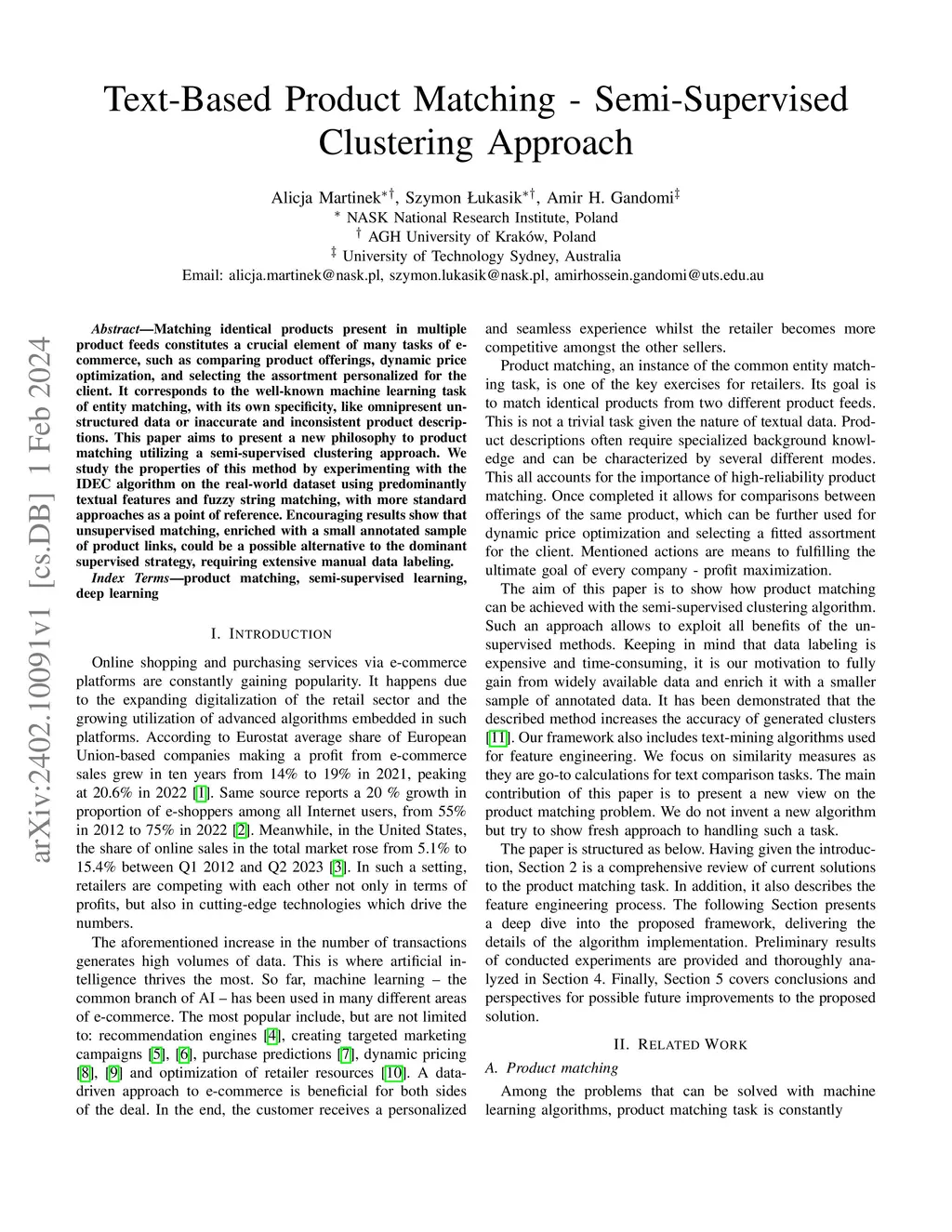 Text-Based Product Matching -- Semi-Supervised Clustering Approach