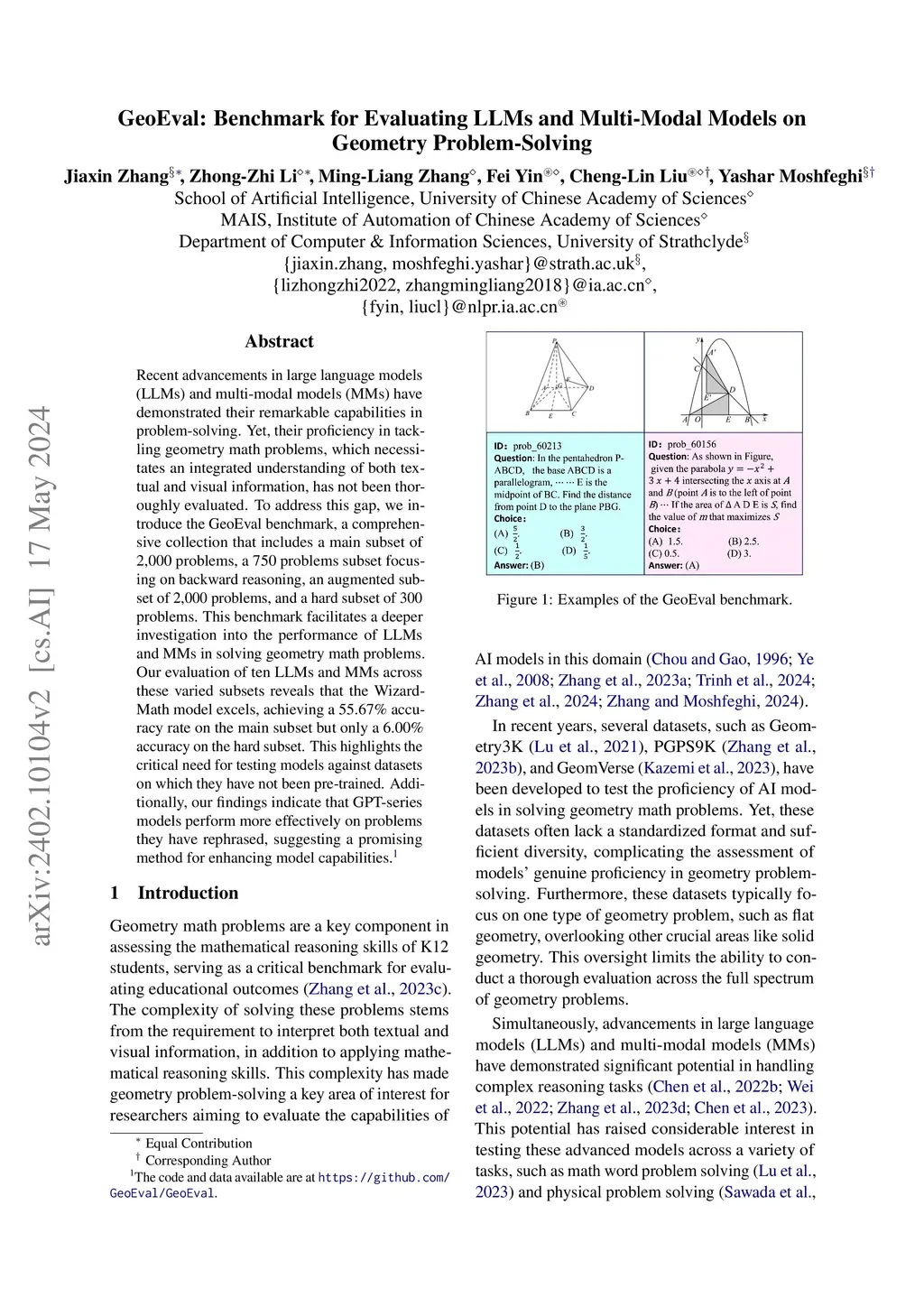 GeoEval: Benchmark for Evaluating LLMs and Multi-Modal Models on