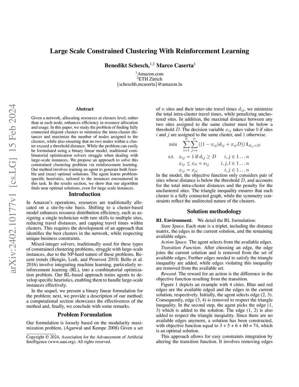 Large Scale Constrained Clustering With Reinforcement Learning