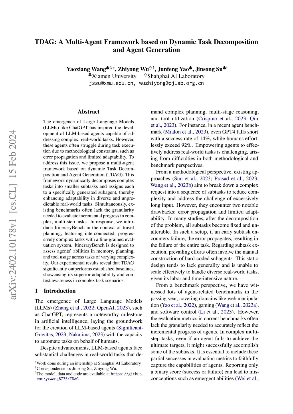 TDAG: A Multi-Agent Framework based on Dynamic Task Decomposition and Agent Generation