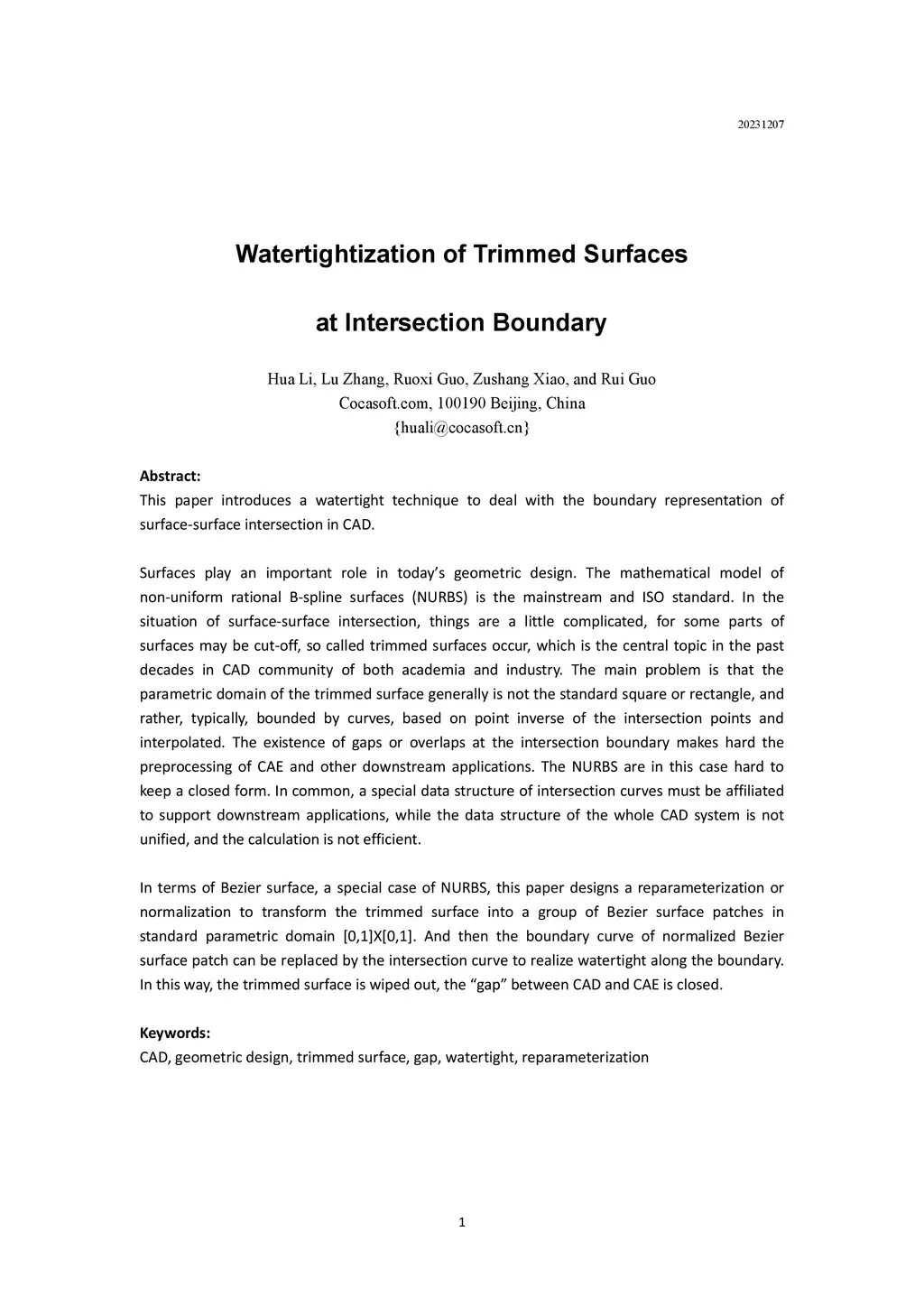 This paper introduces a watertight technique to deal with the boundary representation of surface-surface intersection in CAD. Surfaces play an important role in today's geometric design. The mathematical model of non-uniform rational B-spline surfaces (NURBS) is the mainstream and ISO standard. In the situation of surface-surface intersection, things are a little complicated, for some parts of surfaces may be cut-off, so called trimmed surfaces occur, which is the central topic in the past decades in CAD community of both academia and industry. The main problem is that the parametric domain of the trimmed surface generally is not the standard square or rectangle, and rather, typically, bounded by curves, based on point inverse of the intersection points and interpolated. The existence of gaps or overlaps at the intersection boundary makes hard the preprocessing of CAE and other downstream applications. The NURBS are in this case hard to keep a closed form. In common, a special data structure of intersection curves must be affiliated to support downstream applications, while the data structure of the whole CAD system is not unified, and the calculation is not efficient. In terms of Bezier surface, a special case of NURBS, this paper designs a reparameterization or normalization to transform the trimmed surface into a group of Bezier surface patches in standard parametric domain [0,1]X[0,1]. And then the boundary curve of normalized Bezier surface patch can be replaced by the intersection curve to realize watertight along the boundary. In this way, the trimmed surface is wiped out, the "gap" between CAD and CAE is closed.