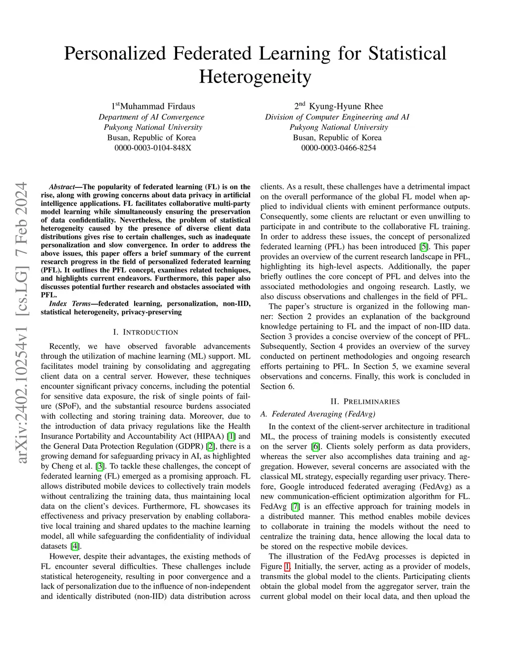 The popularity of federated learning (FL) is on the rise, along with growing concerns about data privacy in artificial intelligence applications. FL facilitates collaborative multi-party model learning while simultaneously ensuring the preservation of data confidentiality. Nevertheless, the problem of statistical heterogeneity caused by the presence of diverse client data distributions gives rise to certain challenges, such as inadequate personalization and slow convergence. In order to address the above issues, this paper offers a brief summary of the current research progress in the field of personalized federated learning (PFL). It outlines the PFL concept, examines related techniques, and highlights current endeavors. Furthermore, this paper also discusses potential further research and obstacles associated with PFL.
