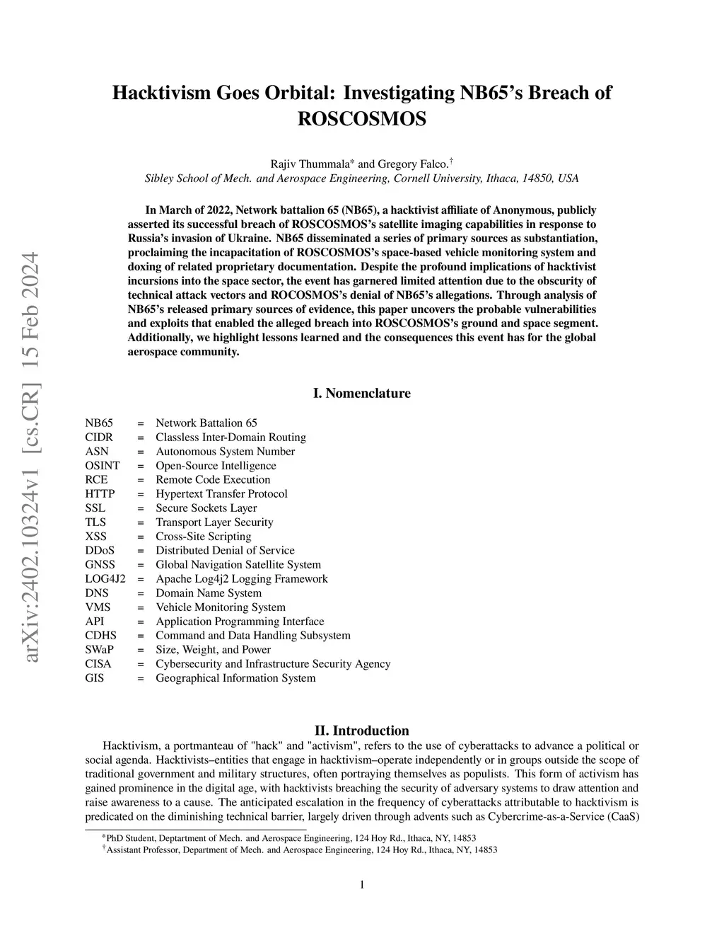 Hacktivism Goes Orbital: Investigating NB65's Breach of ROSCOSMOS