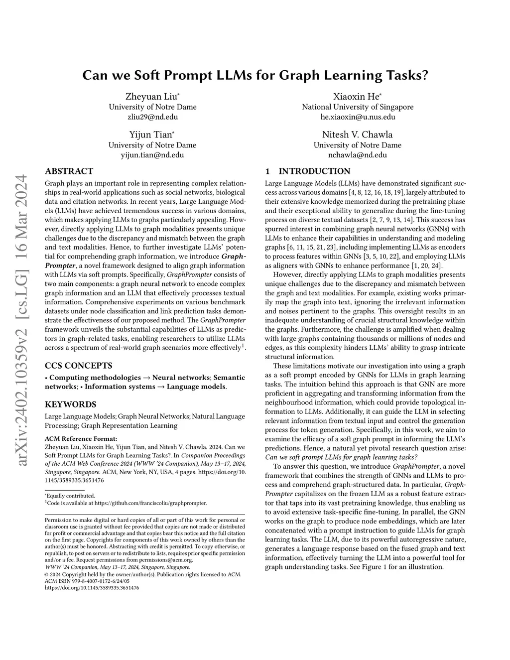 Can we Soft Prompt LLMs for Graph Learning Tasks?