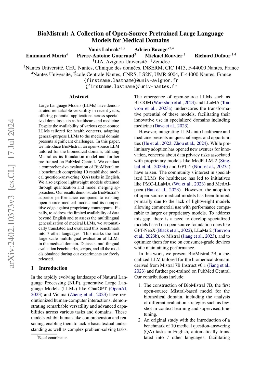 BioMistral: A Collection of Open-Source Pretrained Large Language Models