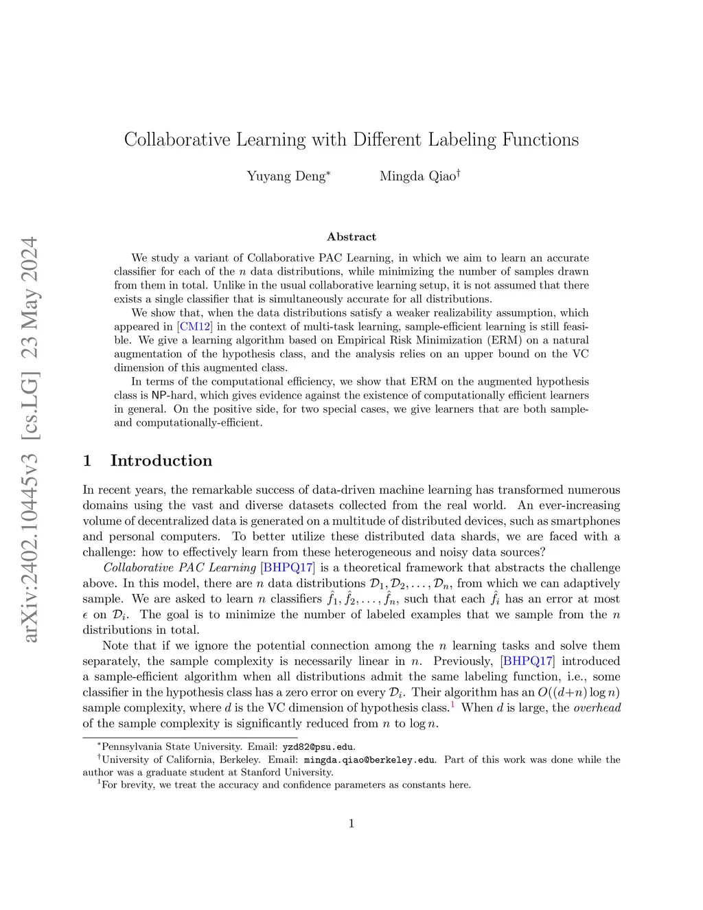 Collaborative Learning with Different Labeling Functions