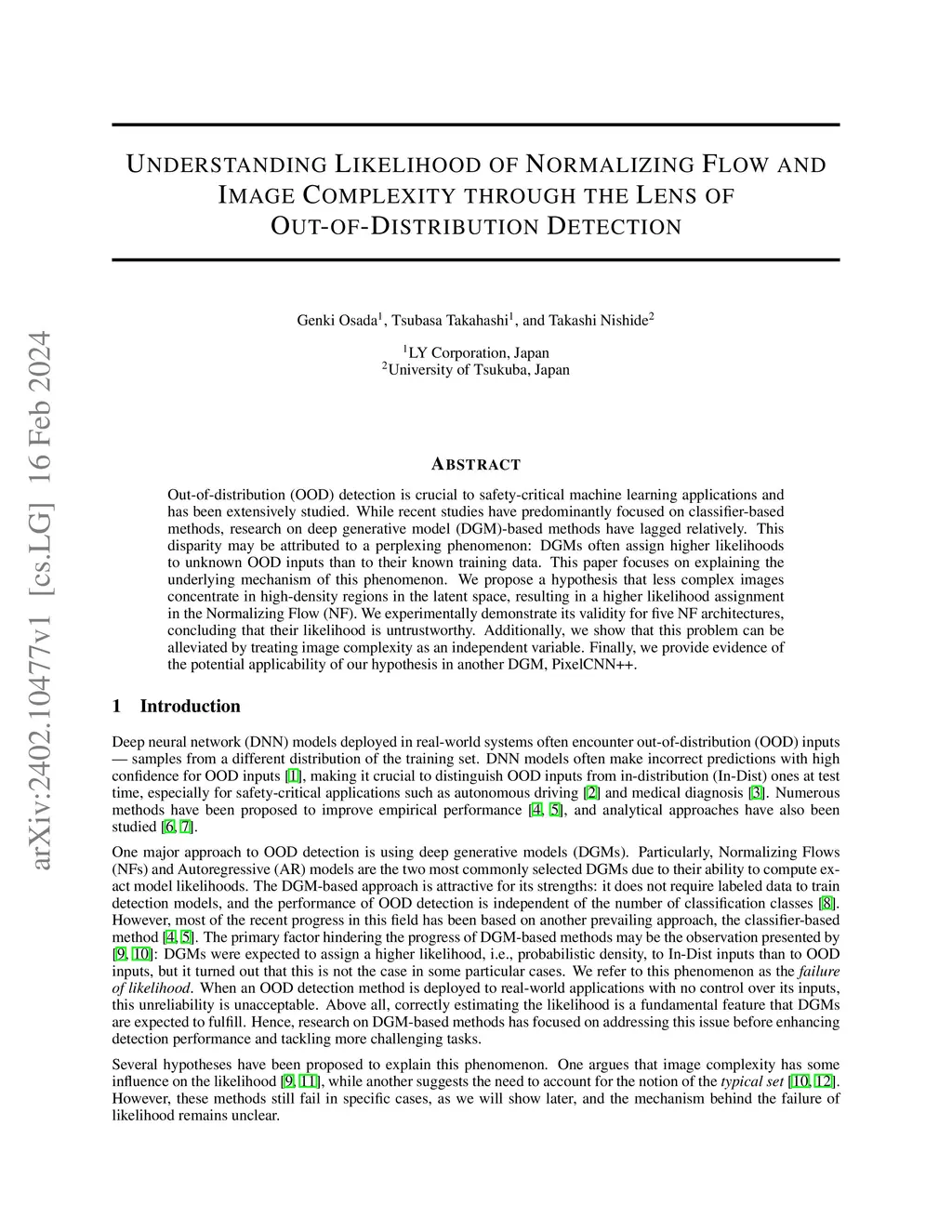 Out-of-distribution (OOD) detection is crucial to safety-critical machine learning applications and has been extensively studied. While recent studies have predominantly focused on classifier-based methods, research on deep generative model (DGM)-based methods have lagged relatively. This disparity may be attributed to a perplexing phenomenon: DGMs often assign higher likelihoods to unknown OOD inputs than to their known training data. This paper focuses on explaining the underlying mechanism of this phenomenon. We propose a hypothesis that less complex images concentrate in high-density regions in the latent space, resulting in a higher likelihood assignment in the Normalizing Flow (NF). We experimentally demonstrate its validity for five NF architectures, concluding that their likelihood is untrustworthy. Additionally, we show that this problem can be alleviated by treating image complexity as an independent variable. Finally, we provide evidence of the potential applicability of our hypothesis in another DGM, PixelCNN++.
