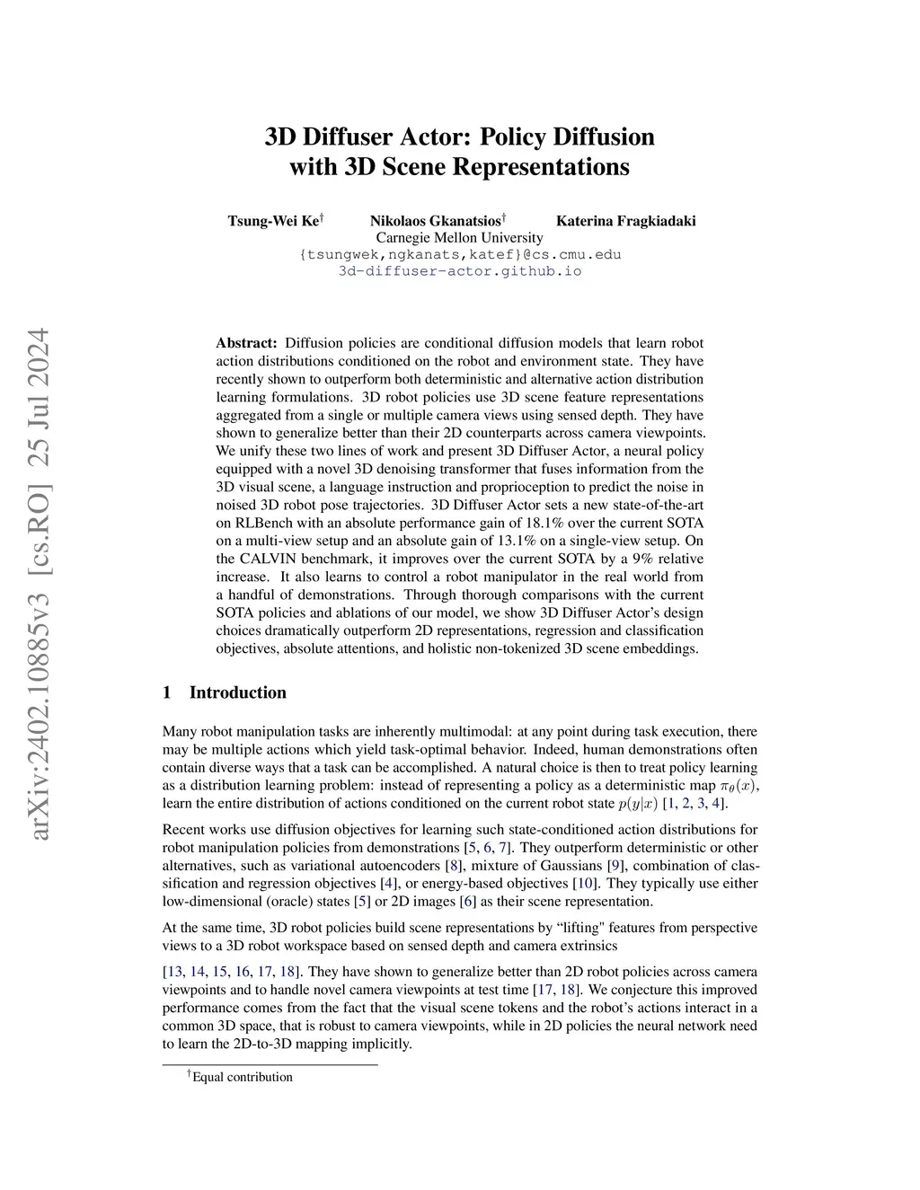 3D Diffuser Actor: Policy Diffusion with 3D Scene Representations