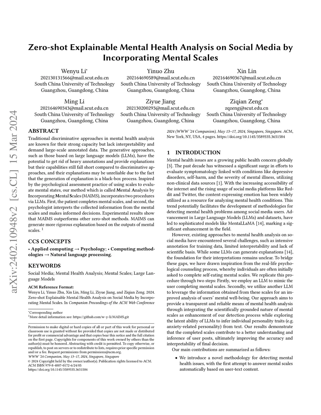 Traditional discriminative approaches in mental health analysis are known for their strong capacity but lack interpretability and demand large-scale annotated data. The generative approaches, such as those based on large language models (LLMs), have the potential to get rid of heavy annotations and provide explanations but their capabilities still fall short compared to discriminative approaches, and their explanations may be unreliable due to the fact that the generation of explanation is a black-box process. Inspired by the psychological assessment practice of using scales to evaluate mental states, our method which is called Mental Analysis by Incorporating Mental Scales (MAIMS), incorporates two procedures via LLMs. First, the patient completes mental scales, and second, the psychologist interprets the collected information from the mental scales and makes informed decisions. Experimental results show that MAIMS outperforms other zero-shot methods. MAIMS can generate more rigorous explanation based on the outputs of mental scales