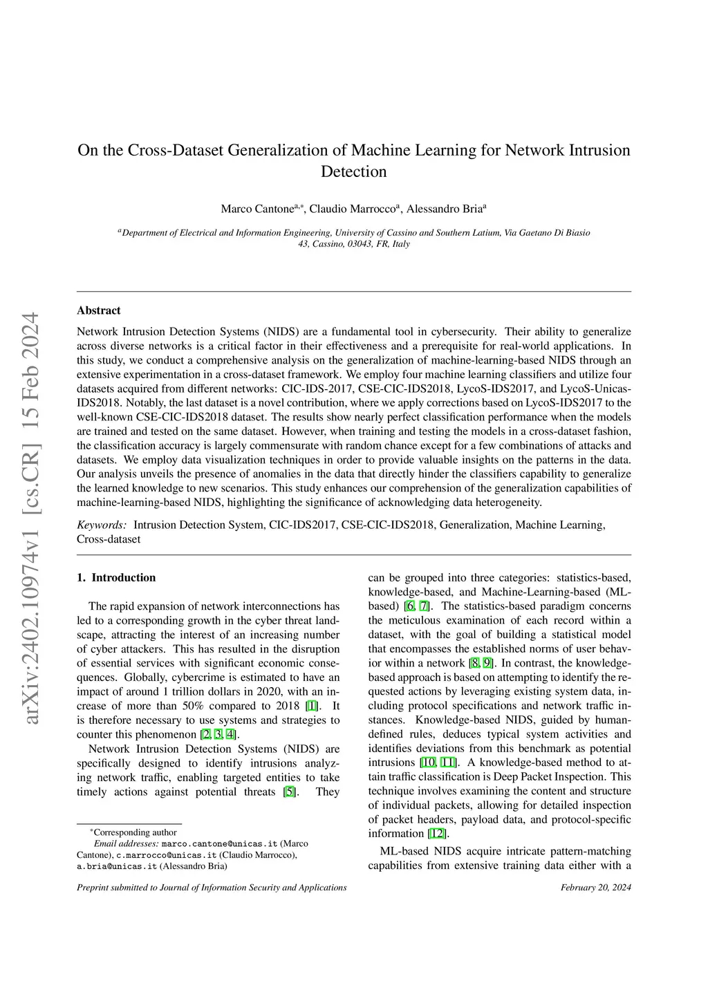 On the Cross-Dataset Generalization of Machine Learning for Network