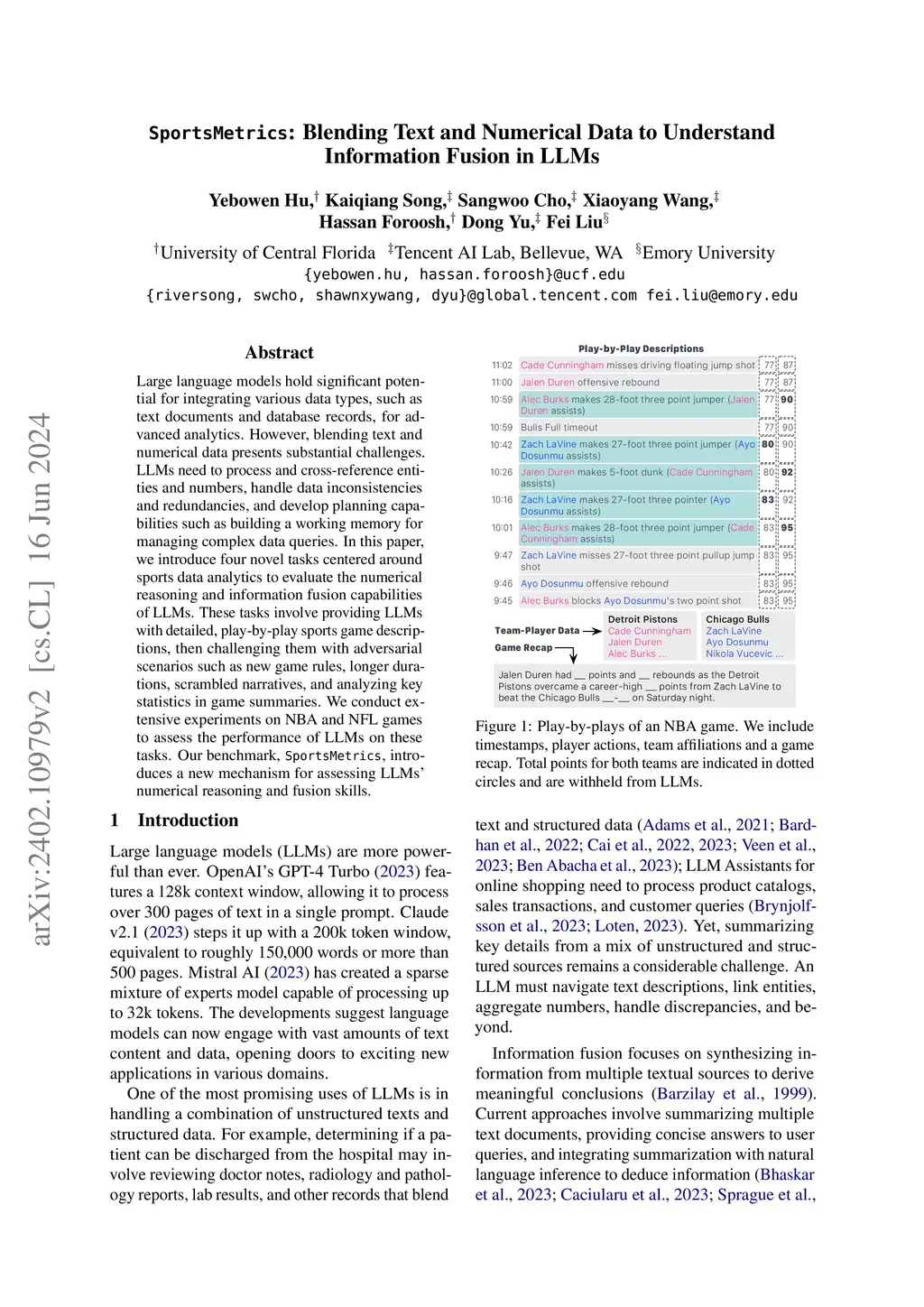 SportsMetrics: Blending Text and Numerical Data to Understand