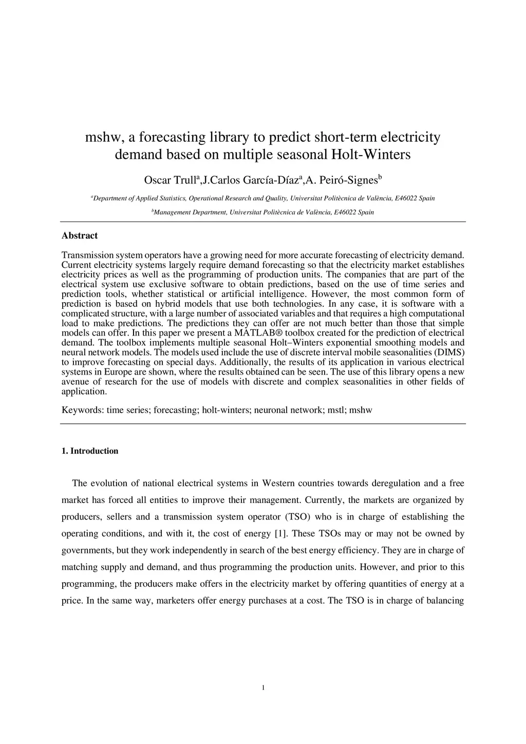 mshw, a forecasting library to predict short-term electricity demand