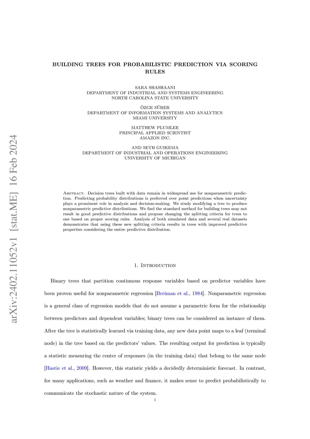 Building Trees for Probabilistic Prediction via Scoring Rules
