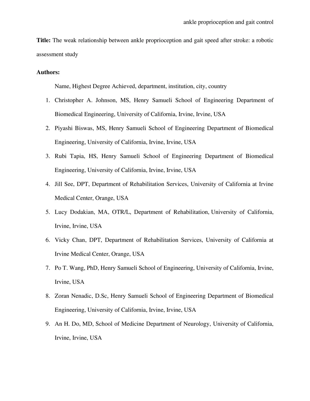 The weak relationship between ankle proprioception and gait speed after