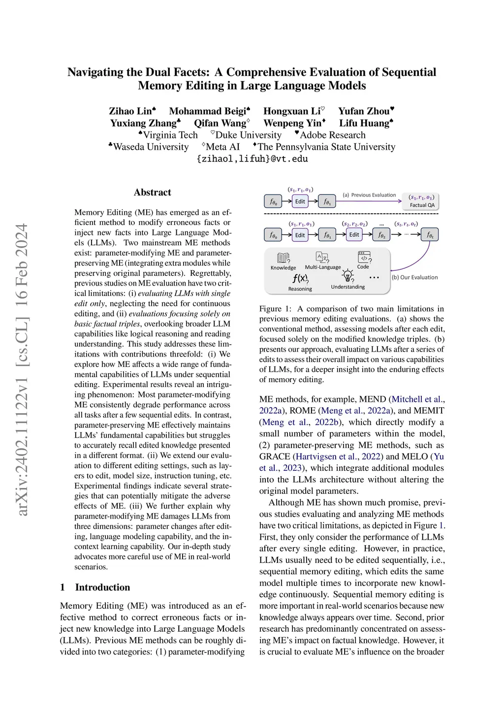 Memory Editing in Large Language Models