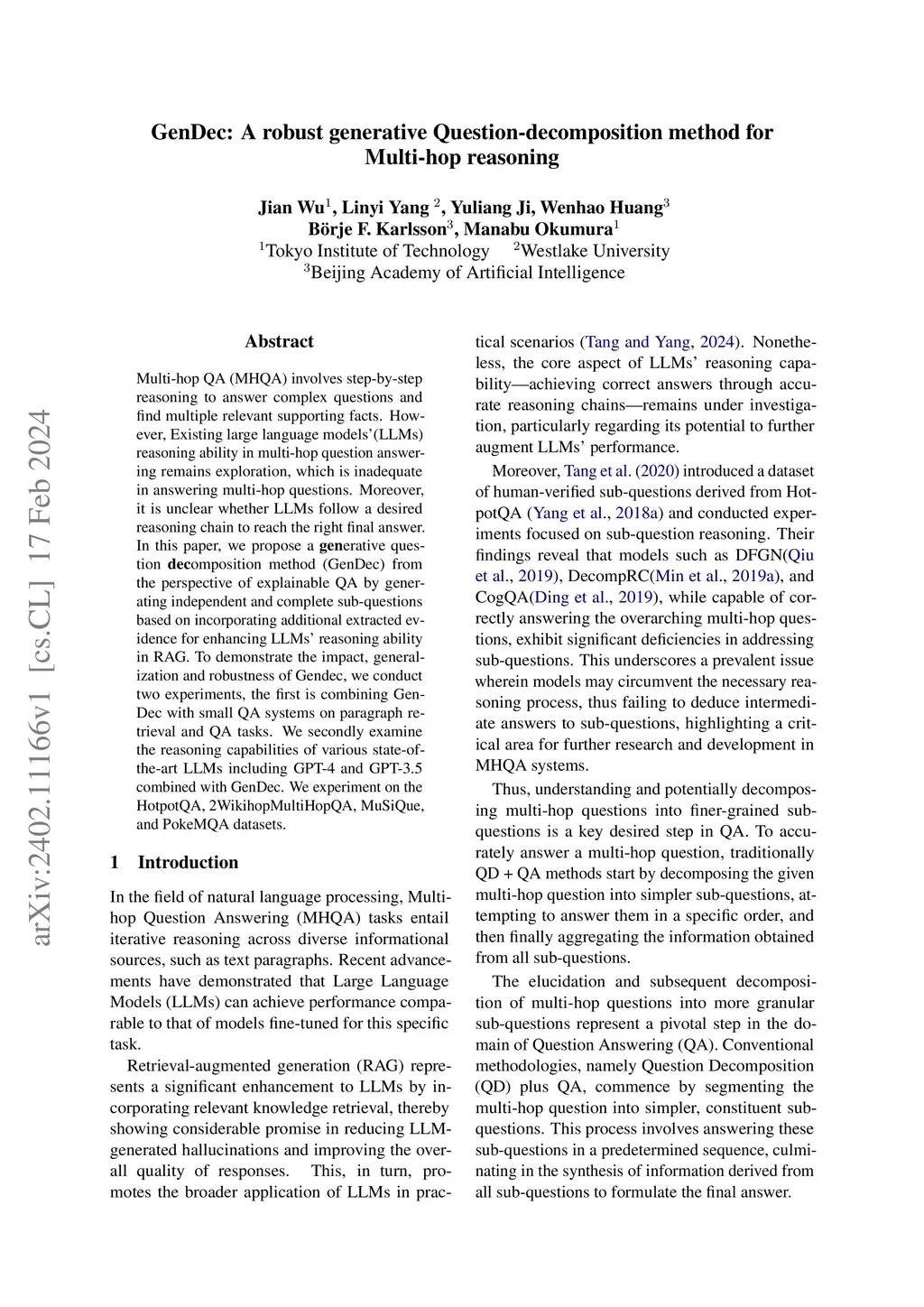 GenDec: A robust generative Question-decomposition method for Multi-hop