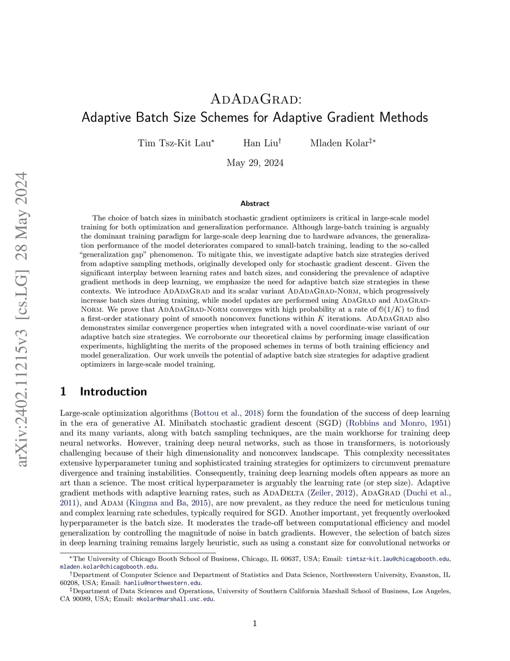 AdAdaGrad: Adaptive Batch Size Schemes for Adaptive Gradient Methods