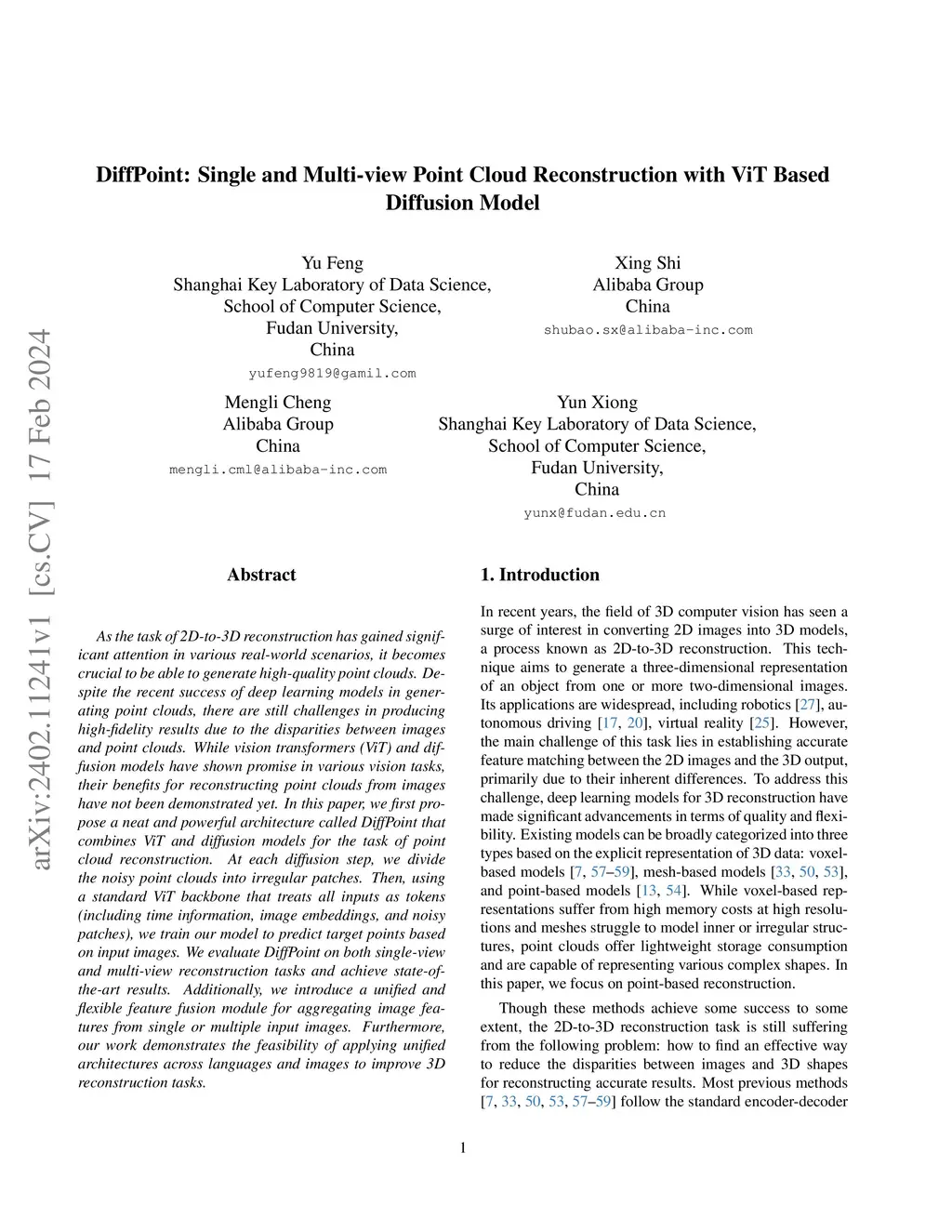 As the task of 2D-to-3D reconstruction has gained significant attention in various real-world scenarios, it becomes crucial to be able to generate high-quality point clouds. Despite the recent success of deep learning models in generating point clouds, there are still challenges in producing high-fidelity results due to the disparities between images and point clouds. While vision transformers (ViT) and diffusion models have shown promise in various vision tasks, their benefits for reconstructing point clouds from images have not been demonstrated yet. In this paper, we first propose a neat and powerful architecture called DiffPoint that combines ViT and diffusion models for the task of point cloud reconstruction. At each diffusion step, we divide the noisy point clouds into irregular patches. Then, using a standard ViT backbone that treats all inputs as tokens (including time information, image embeddings, and noisy patches), we train our model to predict target points based on input images. We evaluate DiffPoint on both single-view and multi-view reconstruction tasks and achieve state-of-the-art results. Additionally, we introduce a unified and flexible feature fusion module for aggregating image features from single or multiple input images. Furthermore, our work demonstrates the feasibility of applying unified architectures across languages and images to improve 3D reconstruction tasks.