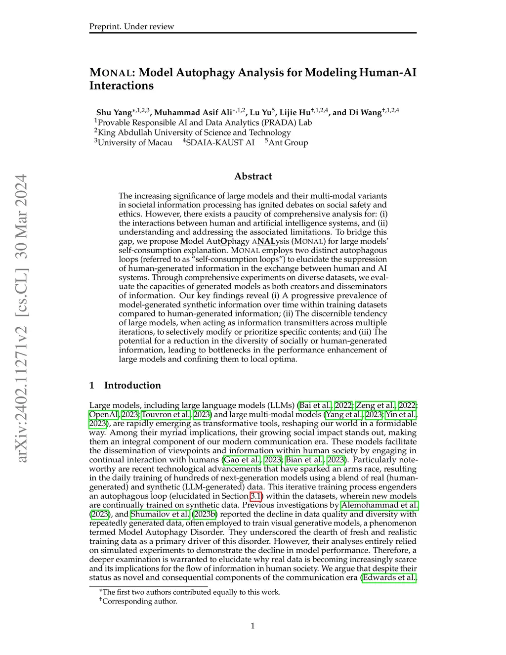 MONAL: Model Autophagy Analysis for Modeling Human-AI Interactions
