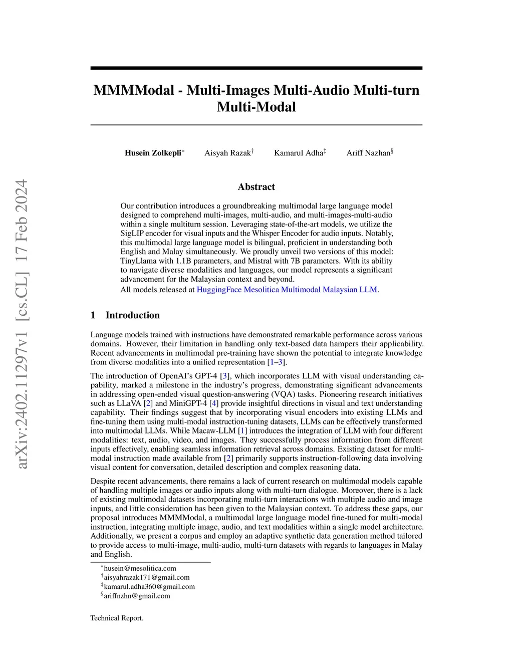 MMMModal -- Multi-Images Multi-Audio Multi-turn Multi-Modal