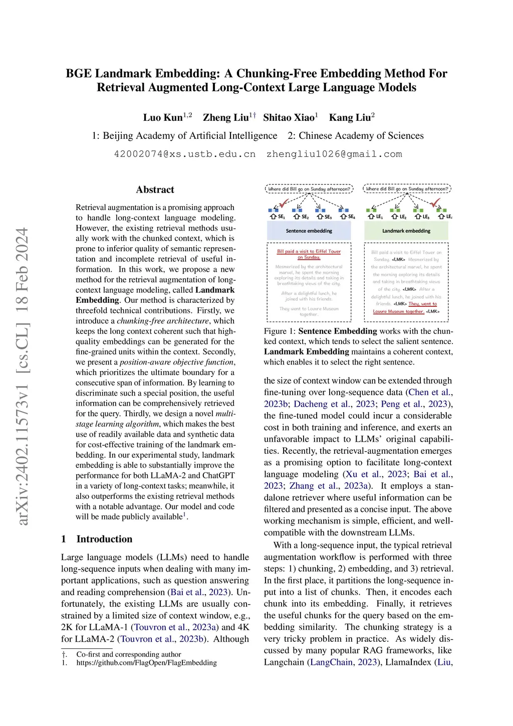BGE Landmark Embedding: A Chunking-Free Embedding Method For Retrieval
