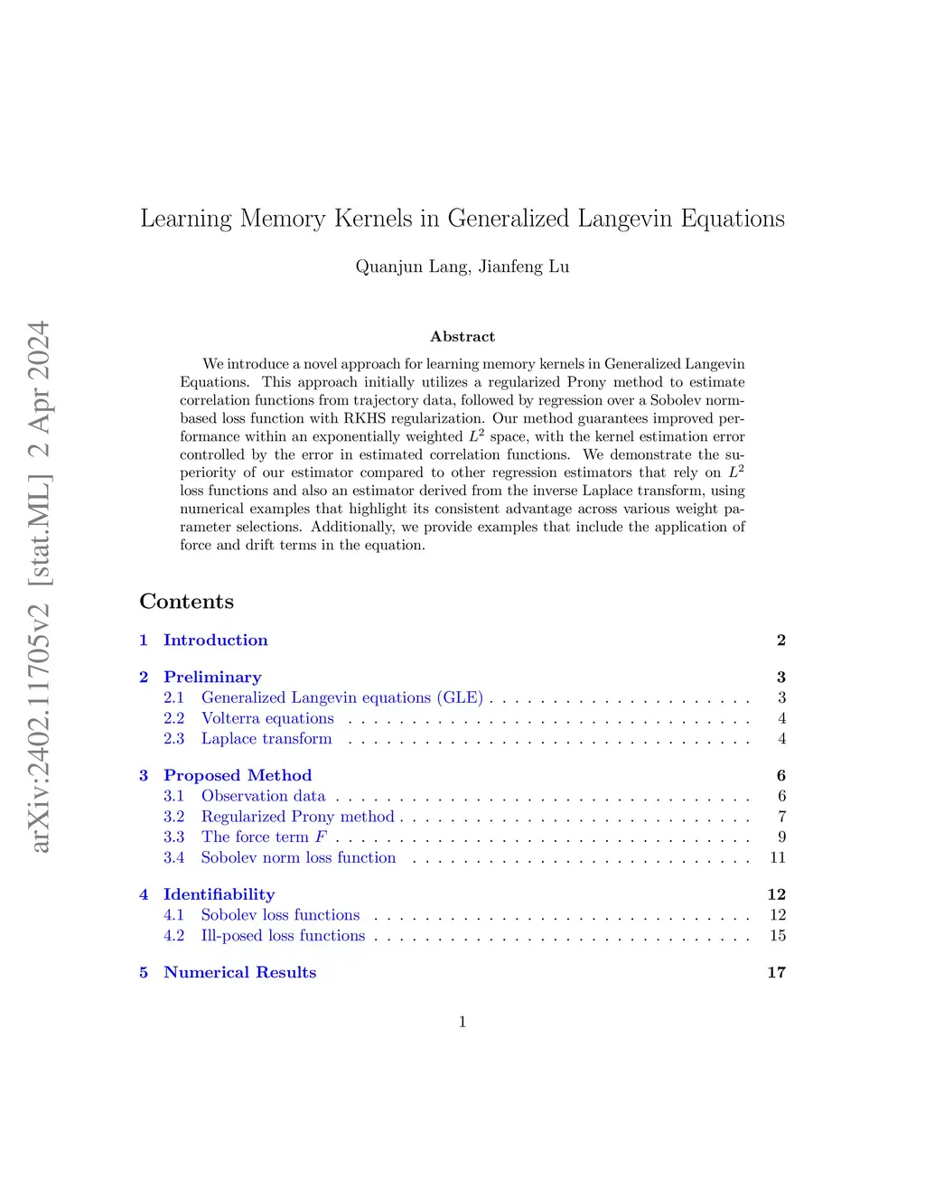 We introduce a novel approach for learning memory kernels in Generalized Langevin Equations. This approach initially utilizes a regularized Prony method to estimate correlation functions from trajectory data, followed by regression over a Sobolev norm-based loss function with RKHS regularization. Our method guarantees improved performance within an exponentially weighted L^2 space, with the kernel estimation error controlled by the error in estimated correlation functions. We demonstrate the superiority of our estimator compared to other regression estimators that rely on L^2 loss functions and also an estimator derived from the inverse Laplace transform, using numerical examples that highlight its consistent advantage across various weight parameter selections. Additionally, we provide examples that include the application of force and drift terms in the equation.